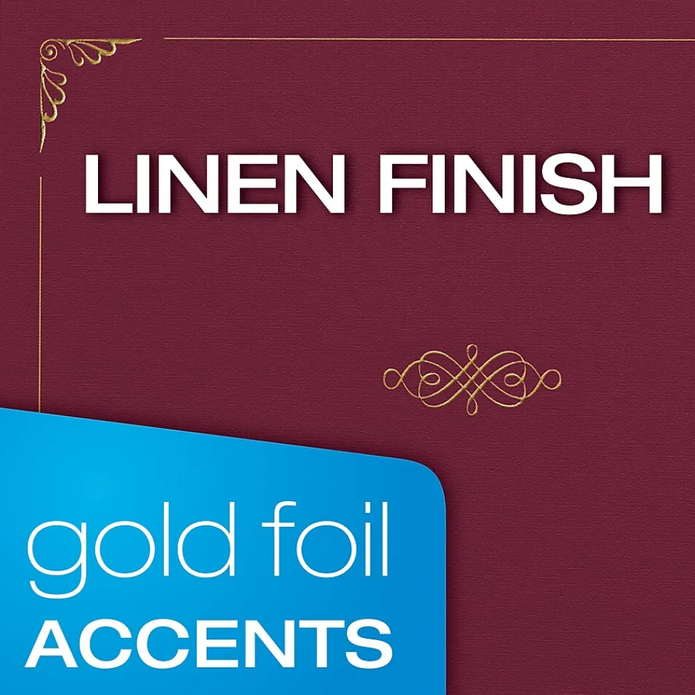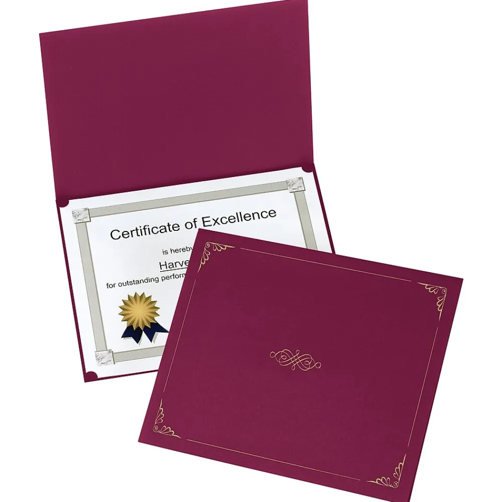 Present awards to staff, clients or other worthy recipients with these certificate holders. The rich burgundy hue and gold foil embossing add an upscale appearance, while the durable construction protects certificates, diplomas, and other official documents from damage. Vertical and horizontal placement options make these folders a versatile choice. Each of these Oxford certificate holders accepts letter-size papers for a perfect fit.
