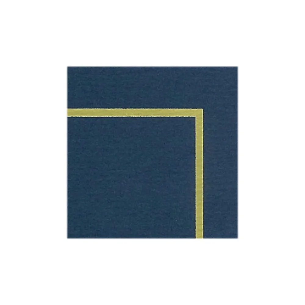 - Made of 88 lb. heavyweight navy paper stock with gold foil border and felt finish