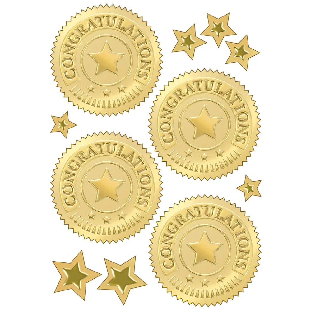 - Congratulations (Gold) Award Seals Stickers, Multicolored; Use for any classroom or school award