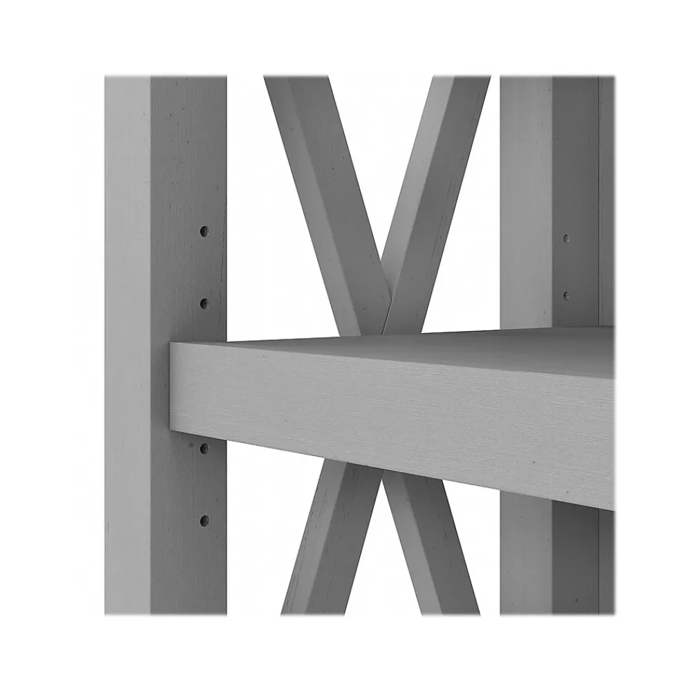The Bush Furniture Key West tall five-shelf bookcase is a perfect way to show off your favorite artwork, photos, plants, and more. Three adjustable shelves accommodate items of various sizes while two fixed shelves provide stability. Each shelf supports up to 50 lbs. so you can store your personal library and display decorations with confidence. Stylish touches include unique X-pattern accents on the side panels as well as a sturdy and attractive post leg design. This five-tier bookcase includes wall attachment hardware for family-friendly safety and security in any home office or living room. A perfect choice for homes that embrace cottage, coastal, and farmhouse decor, the Bush Furniture Key West collection includes a variety of coordinating items to expand your space as needed. This tall bookcase is tested to meet ANSI/SOHO quality standards for safety and performance and is backed by a 1-year manufacturer warranty.