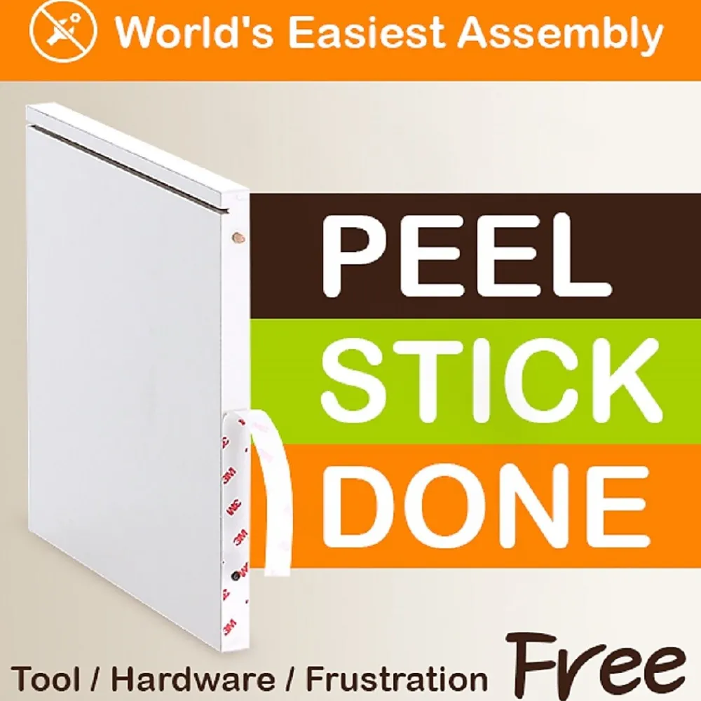 - Tool free assembly; just peel the 3M Adhesive strips and put together with easy-align pins