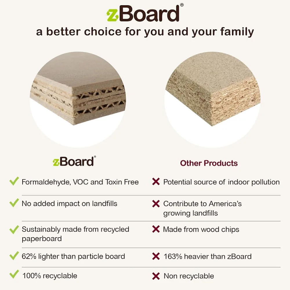 - Sustainably made from eco friendly non toxic zBoard recycled paperboard with semi glossy paper veneer finish
