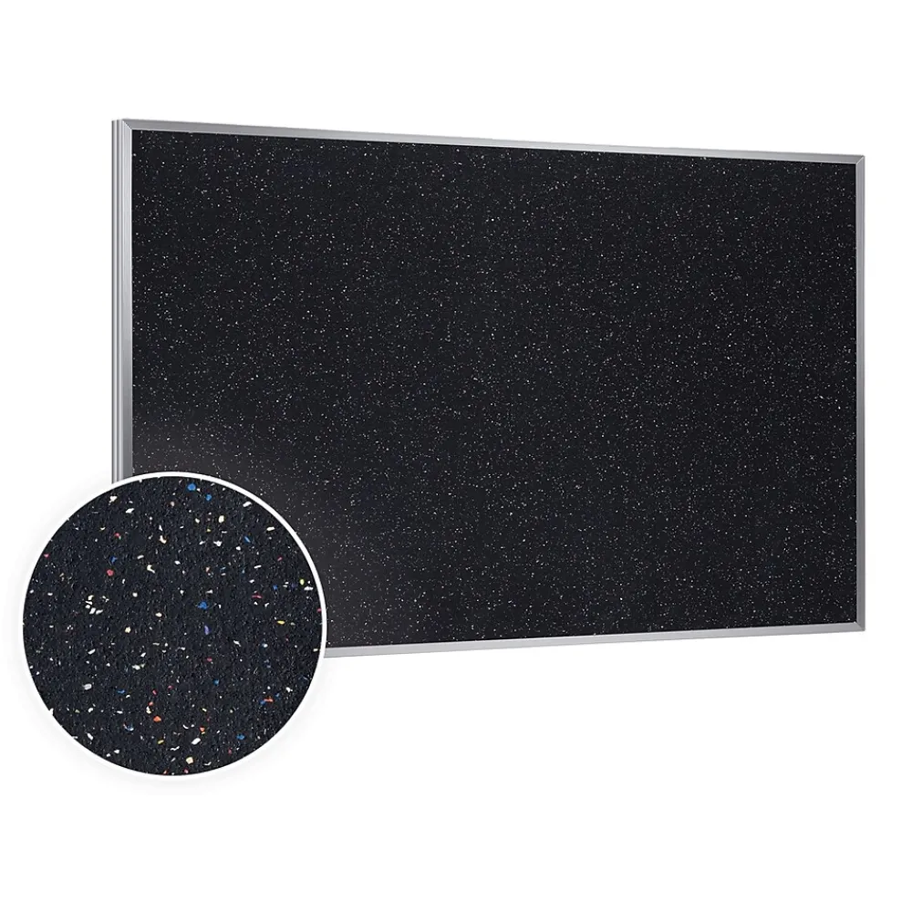 Go green with Ghent’s Recycled Rubber Bulletin Boards. Made using recycled tire material, the resilient rubber offers a self-healing bulletin surface that is long-lasting and eco-friendly. Rubber is elastic and wants to hold its original shape, meaning when you remove a tack or pin, the surface will expand to fill in any holes. Repeated tacking won’t damage the board, keeping the surface strong and your paper bulletins from falling to the floor. The elasticity of our recycled rubber tackboard makes it the perfect choice for classrooms and offices that use bulletin boards daily. If you work in a building with specific cleaning and health standards, the rubber tack surface is washable, allowing you to disinfect the board without damaging the surface. Also, Ghent’s rubber bulletin board is stain and fade resistant, fighting against the wear and tear of daily use. The textured rubber surface is paired with an aluminum frame that complements the design of any room. All bulletin boards are shipped to you in Ghent’s worry-free packaging, designed specifically for shipping bulletin boards damage-free. Ghent’s Recycled Rubber Bulletin Board carries a 10-year warranty and is made in the USA.