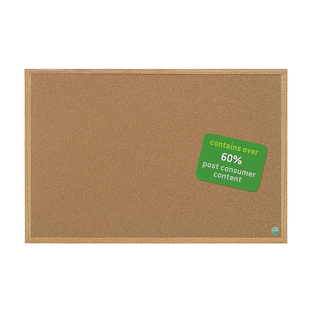 Display upcoming events, goals, and other items on this corkboard. Constructed from thick material, this board is durable, stands up to repeated use and keeps pin holes hidden. This MasterVision MDF-oak-frame Earth cork board is an ample size to offer plenty of room for various posts and includes mounting hardware, making it easy to mount quickly for immediate use.