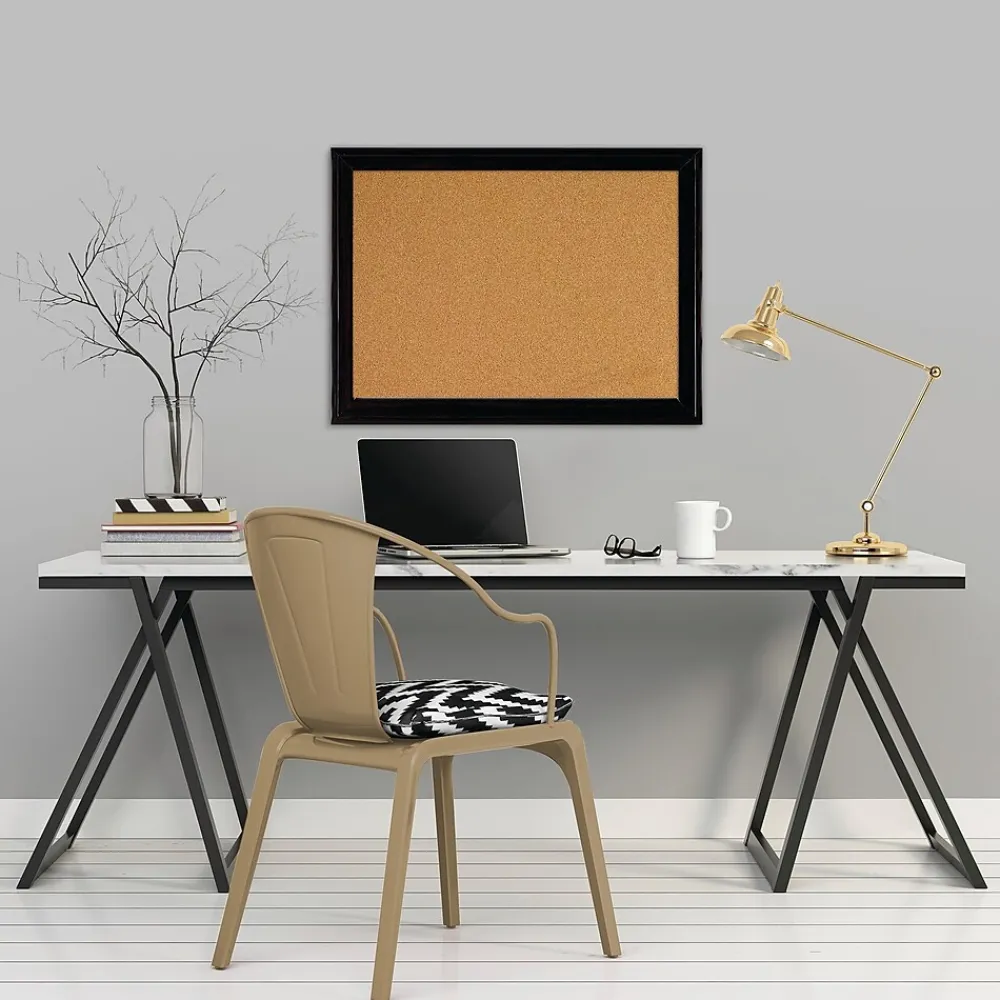Keep personal notes, lists, or pictures close at hand by pinning them to this sleek cork board. With its black frame and natural cork surface, this board complements any decor in the home or workplace. The self-healing cork backing means that push pins and thumbtacks can be used repeatedly without causing unsightly damage. This Quartet cork board measures 17 inches by 23 inches and can be hung vertically or horizontally to meet your preferences.