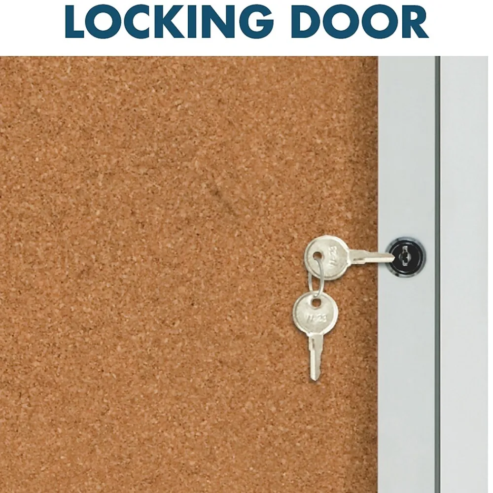 Protect signs with this bulletin board with lockable hinged doors. It’s natural cork surface is strong enough to withstand repeated posting, and aluminum-framed doors have full-length hinges that let them pivot completely, making it easy to post or change notices. The windows on this Quartet enclosed bulletin board are shatterproof, protecting its contents from potential vandalism.