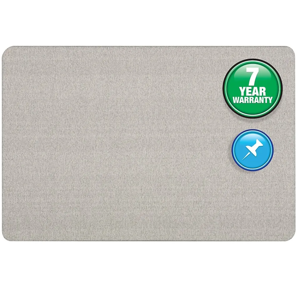 Create a central place to keep important company information, updates, and more with this Quartet Oval Office fabric bulletin board. This board features a gray fabric surface backed by high-density fiberboard and a frameless design that provides more usable space. The backing is water-resistant and firmly holds pins in place. This 3′ x 2′ board comes with mounting hardware and offers vertical or horizontal configuration.