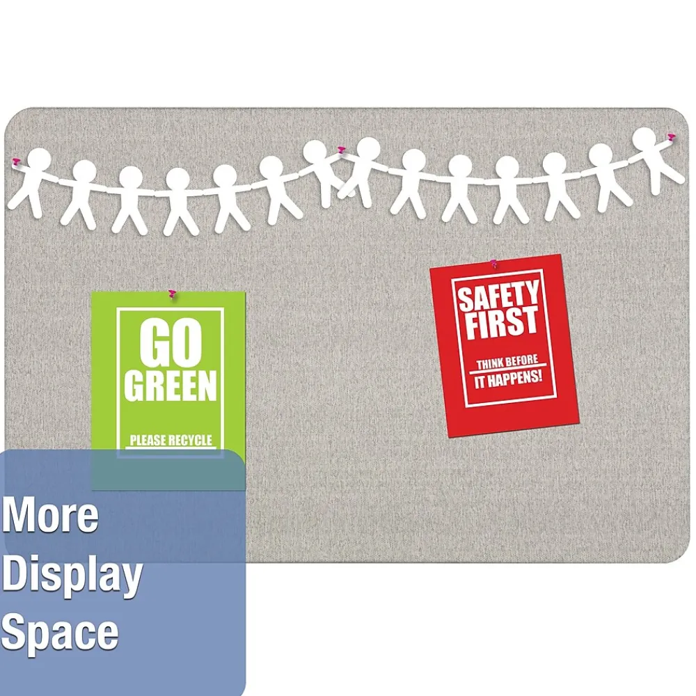 - Durable frameless bulletin board backed by high-density fiberboard secures documents firmly