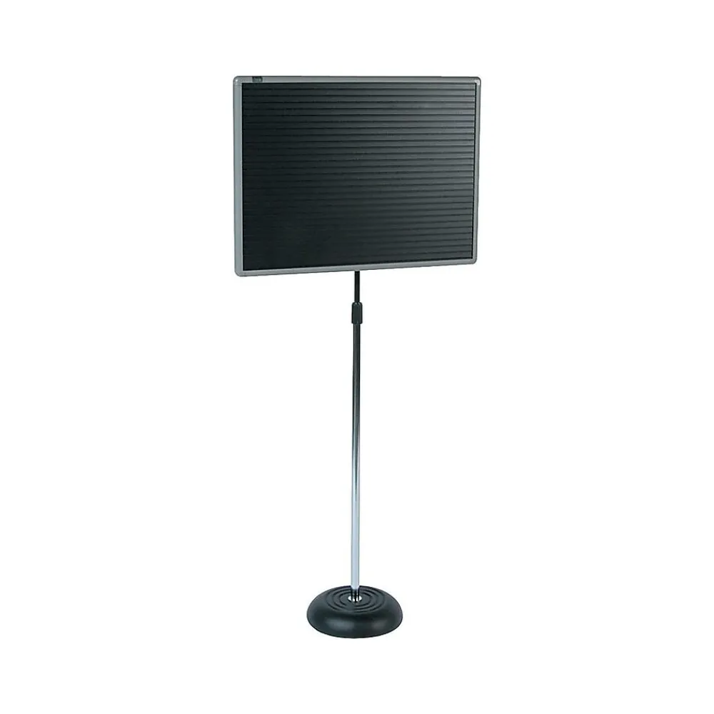 Personalize public messages with this versatile pedestal letter board. This letter board has a weighted base that keeps it from tipping over in high-traffic areas and its adjustable height lets you customize the pedestal to suit different environments. This letter board has a magnetic surface lined with horizontal ridges allowing magnetic letters to be quickly and efficiently affixed. With its modern gray aluminum frame, this Quartet adjustable pedestal magnetic letter board is a sturdy display option for businesses, offices, and public facilities.