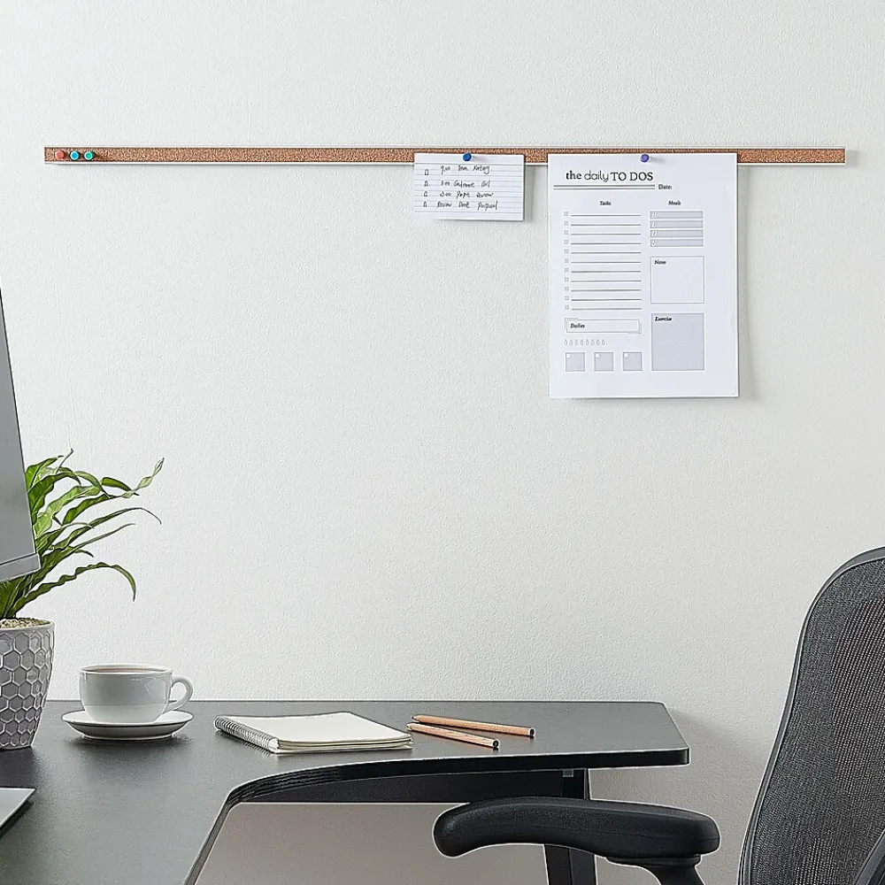 - Durable natural-cork bar creates a tackable display surface for securing documents, presentations, and displays