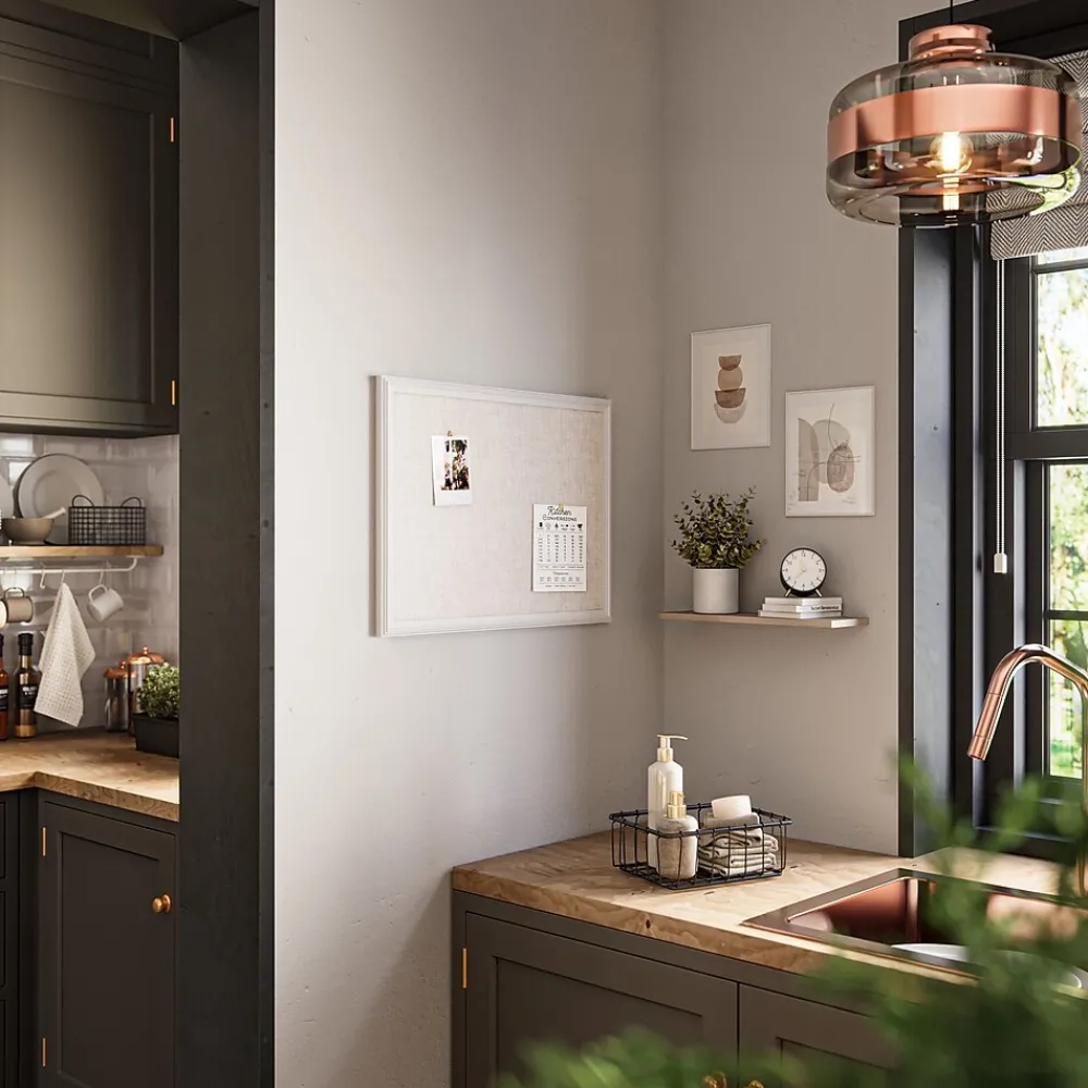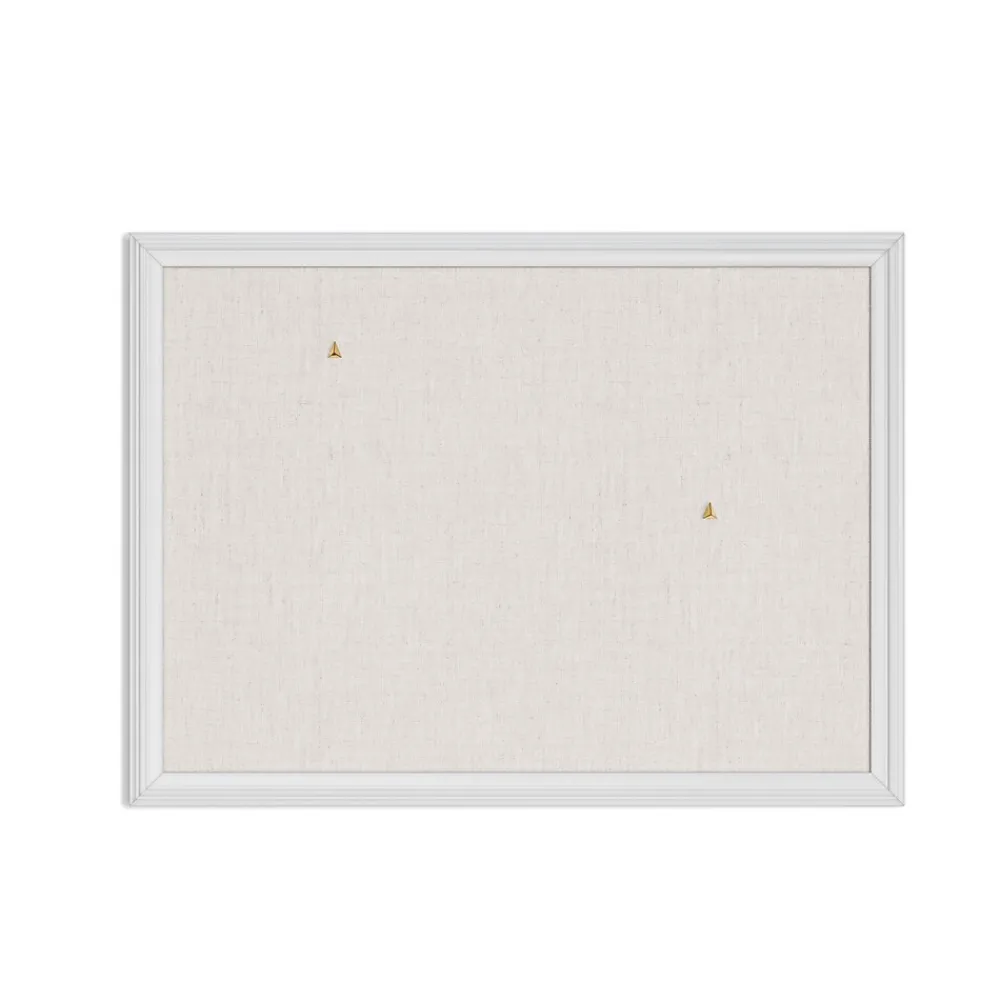 Elevate your office or home decor with our statement-making Linen Bulletin Board that effortlessly combines personality with productivity. This fashionable and functional bulletin board features a modern white wood style frame and an elevated linen surface that add a touch of sophistication to any home, classroom, or office. There’s plenty of space to pin and display important notes, messages, pictures, memos, calendars, menus, reminders, and more with its 23″x17″ size. The dense board backing material keeps the surface pristine by hiding push-pin holes, ensuring a clean and flawless surface even after repeated use. Whether you hang it vertically or horizontally, this tack board has hassle-free mounting hardware and instructions for easy installation. Explore our stylish and fashion-forward product lines, including stationery, journals, writing tools, presentation boards, and desk organization solutions for your home, school, or office.