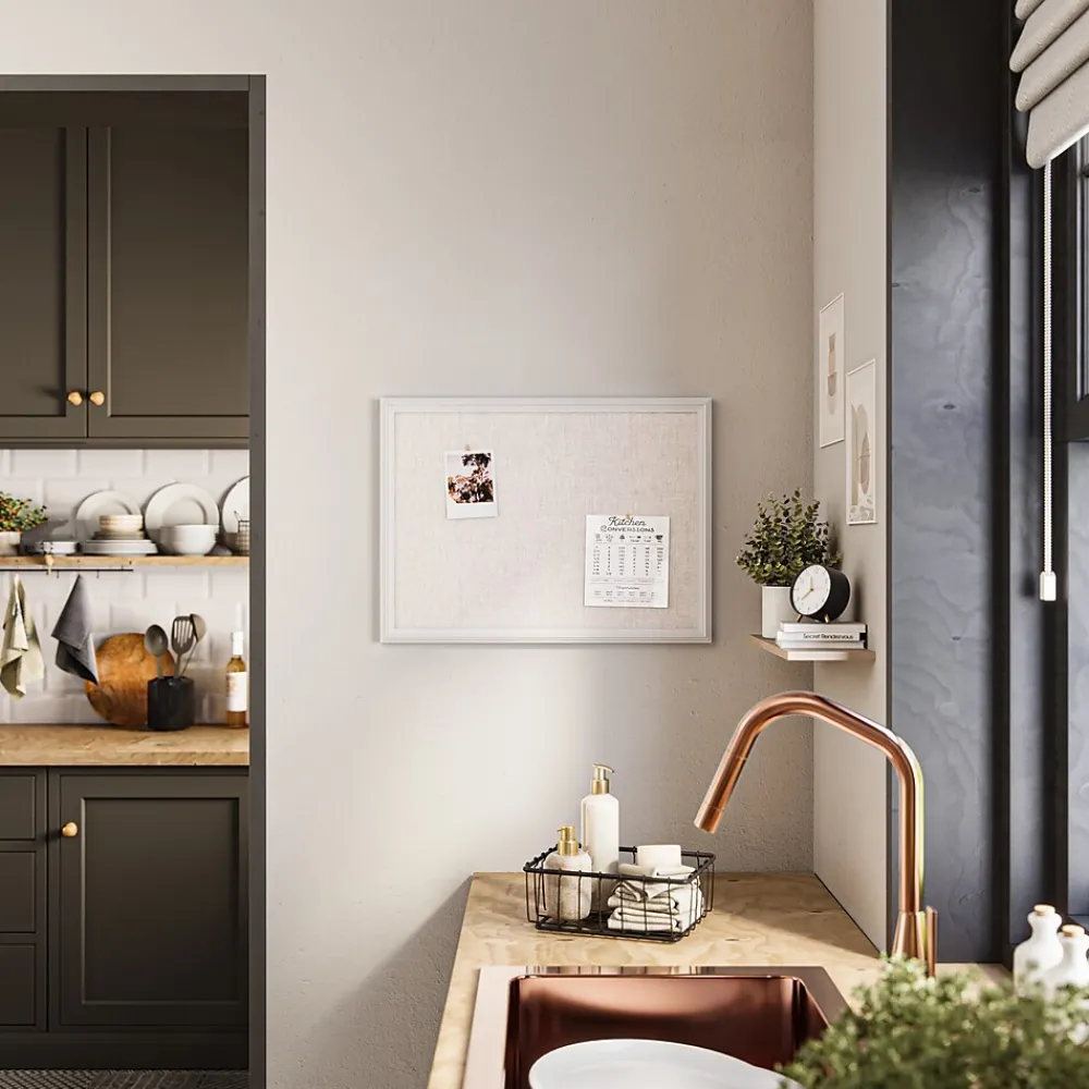 - SHARE, CREATE, COLLABORATE: Elevate your environment and share your ideas, inspiration, and important notes effortlessly with this 23″x 17″ linen bulletin board that adds a contemporary touch to any office, classroom, or home decor