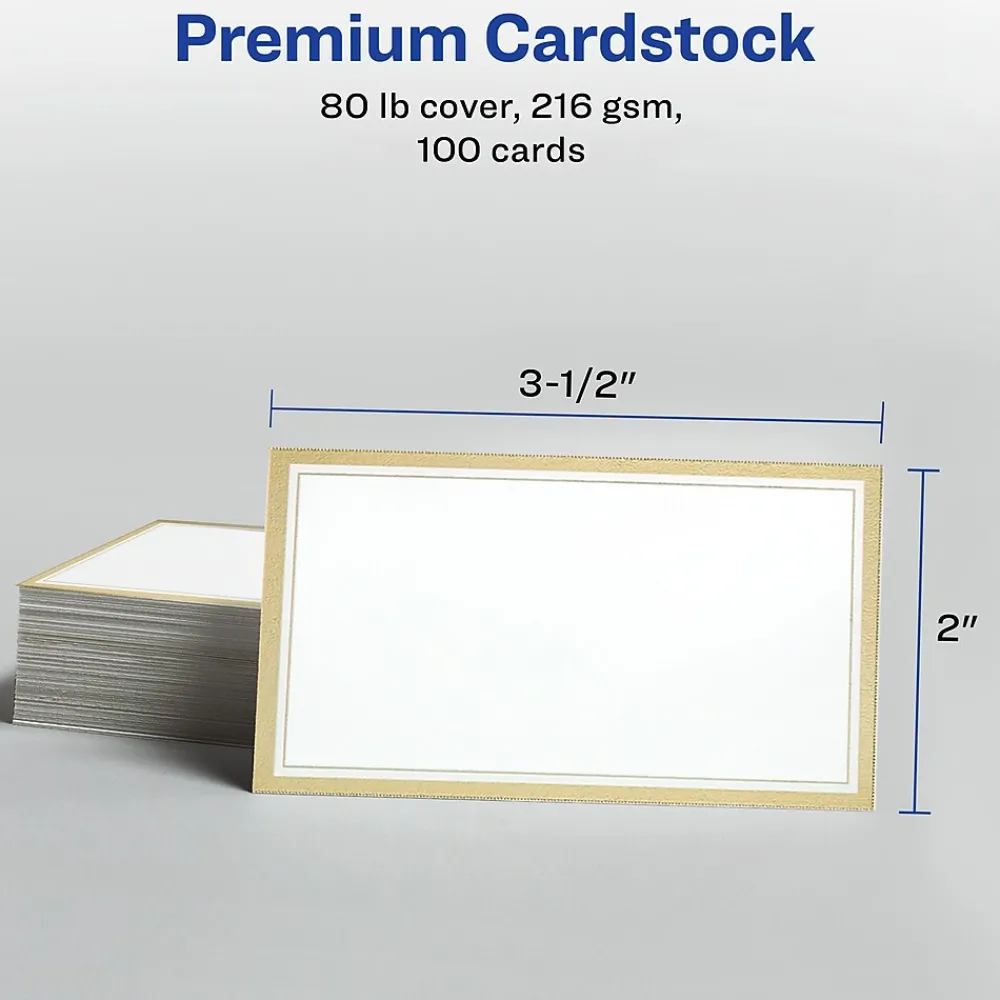 - Create an elegant look with white business cards featuring eye-catching metallic gold borders that pair beautifully with other Avery metallic gold border products