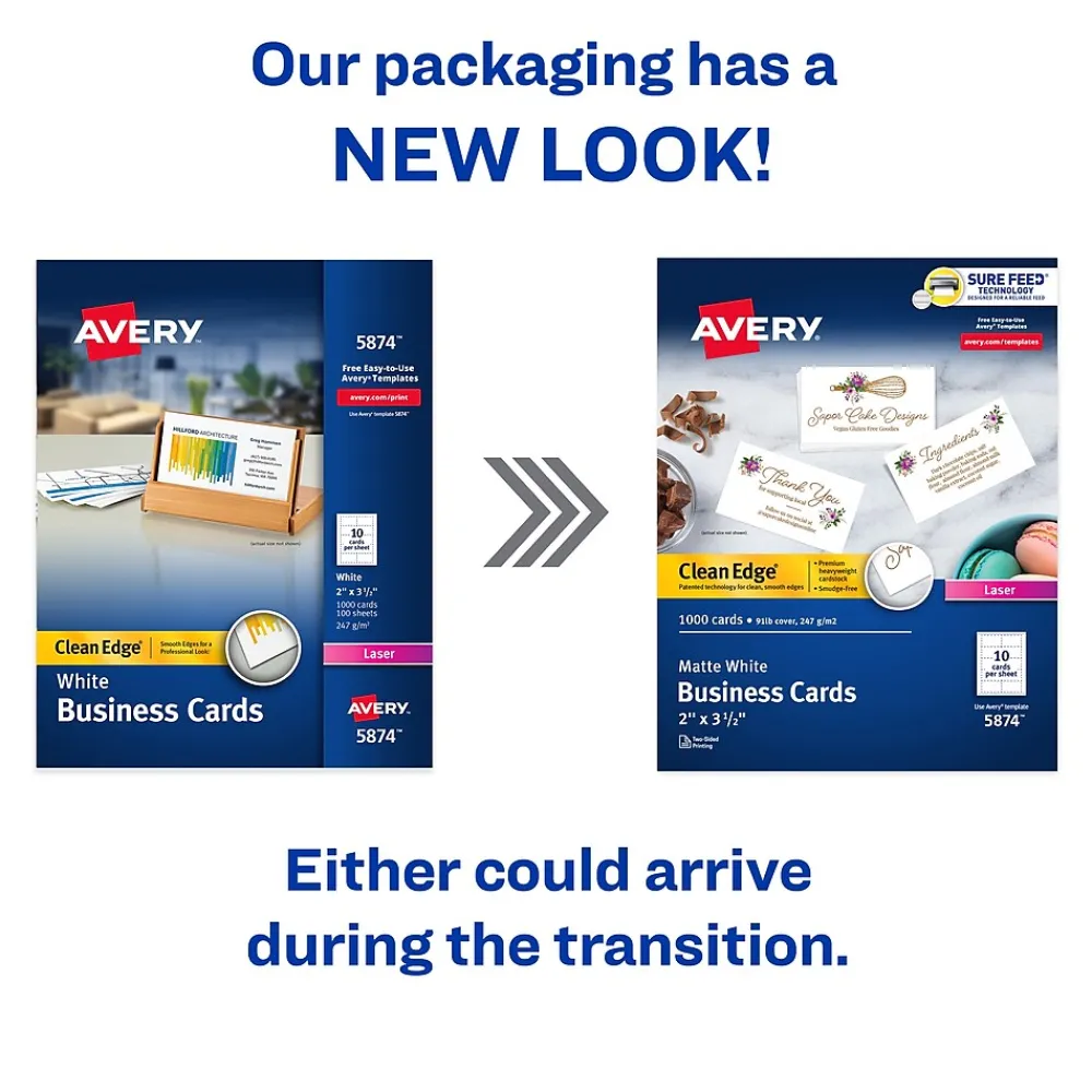 - Each sheet of business cards features proprietary Avery Sure Feed technology designed to help with alignment and reduce printer jams