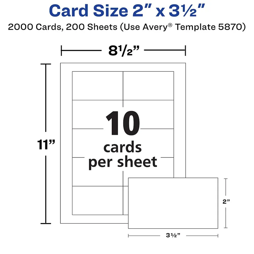 - Item includes 200 printable sheets with a total of 2,000 blank 2″ x 3.5″ cards