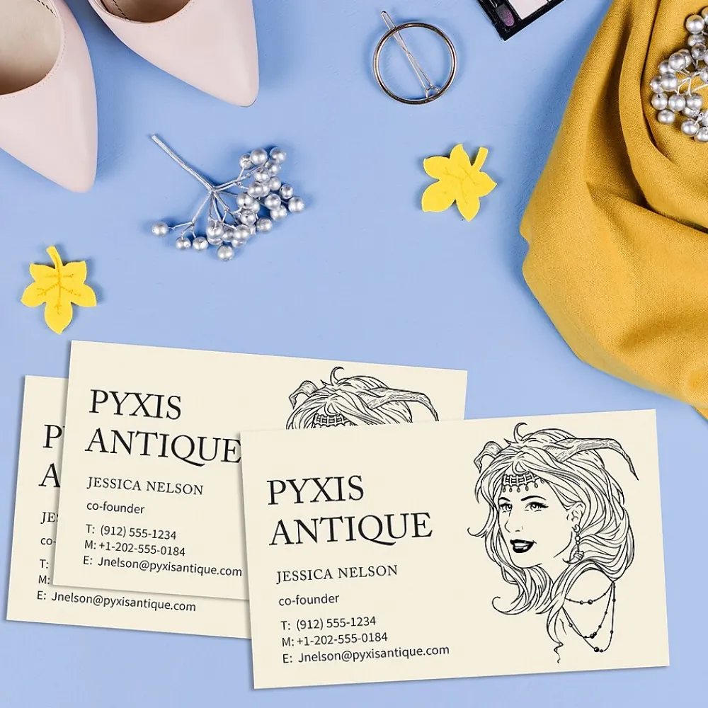 - Cut from elegant ivory business card stock paper with a weight of 80lbs / 216gsm