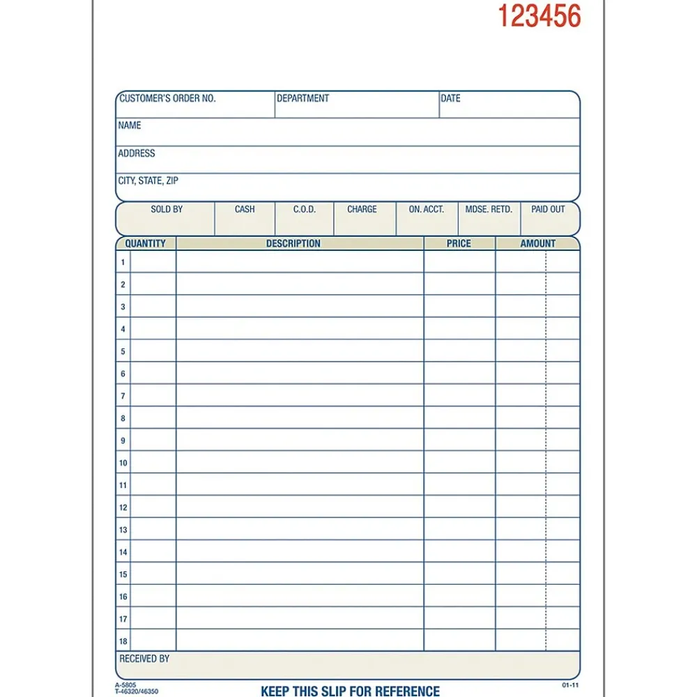 Adams® 2-Part sales order form book is numbered consecutively. Sales order form book is carbonless and has space at top for company stamp.