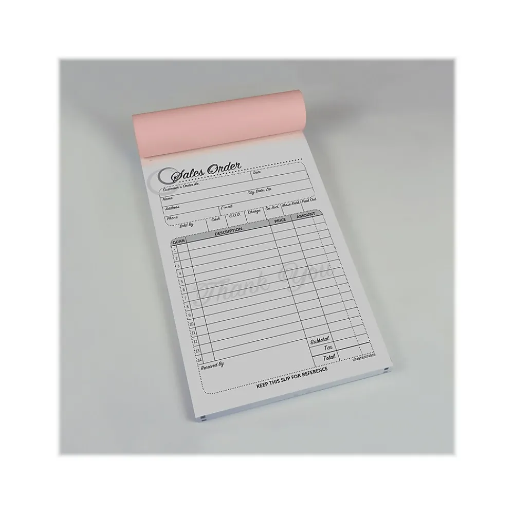 - Features a carbonless three-part format and comes in white, canary, and pink