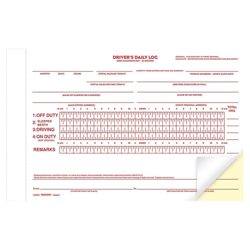 - Driver’s daily log book is providing plenty of space to record driving time