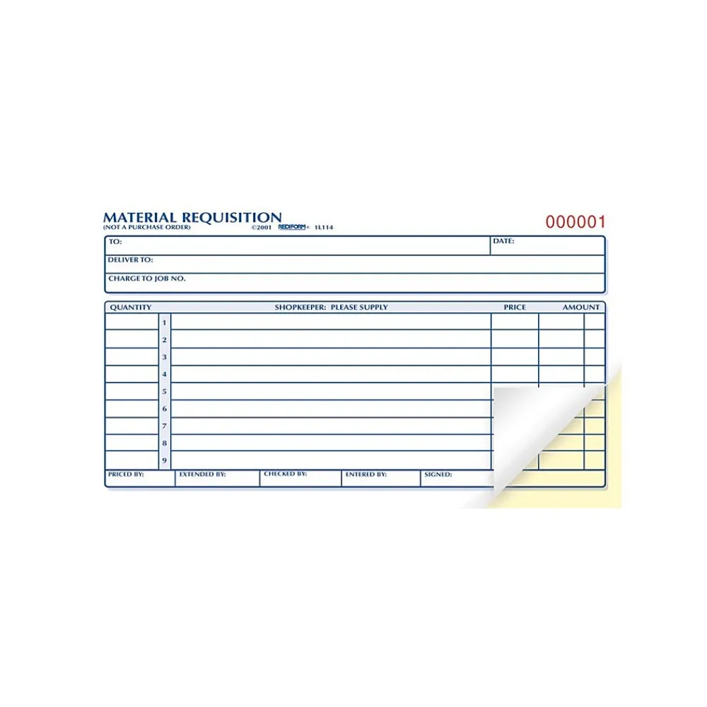 - Material requisition book is consecutively numbered for easy organization