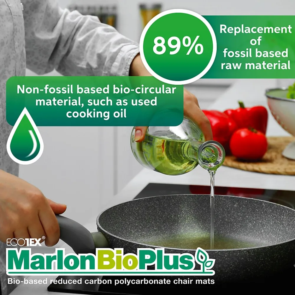 - Produced using 100% renewable energy from climate neutral resin which is certified to have a 100% reduction in carbon emissions. 89% non-fossil based bio-circular material. The ultimate eco-friendly chair mat collection