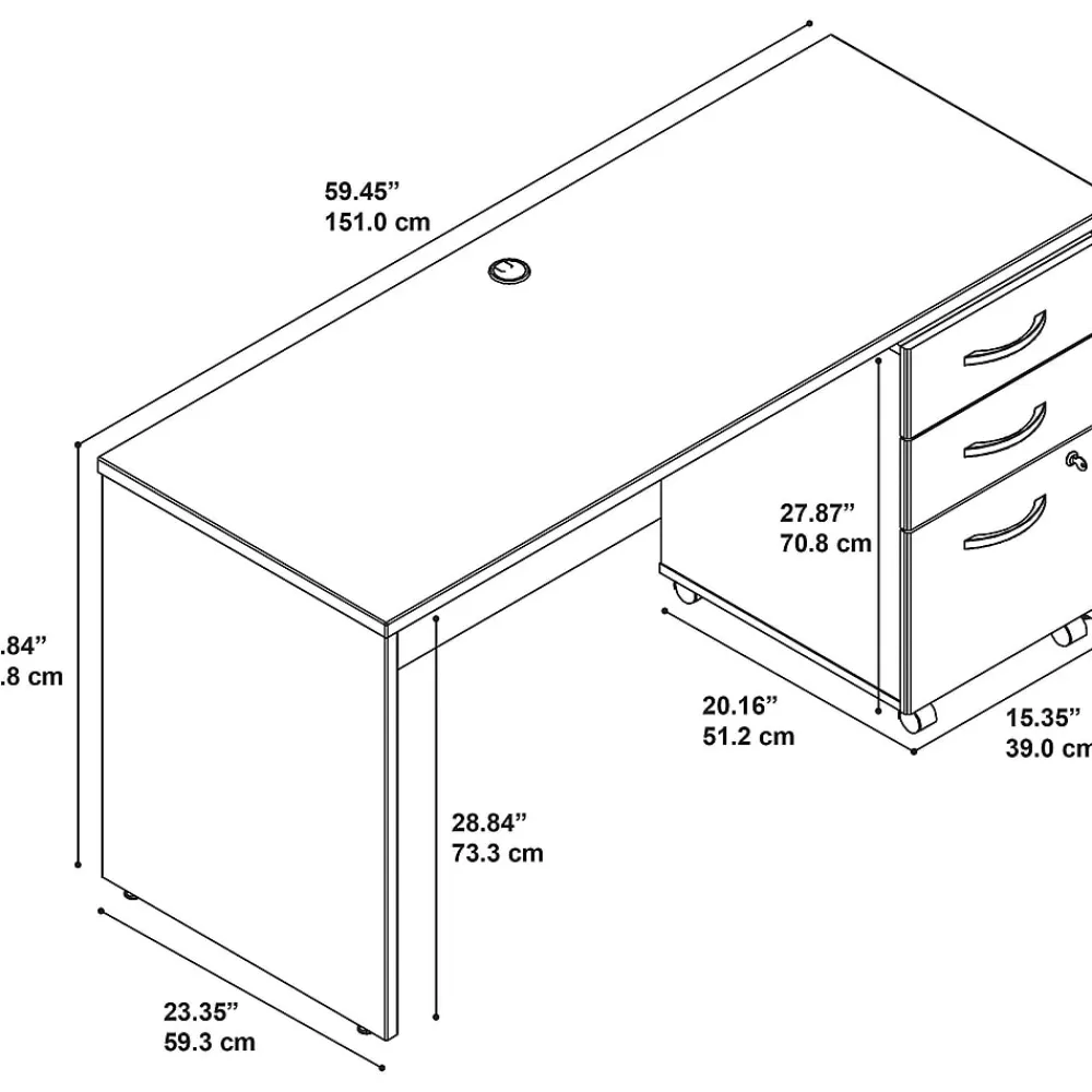 The options are endless with Bush Business Furniture Series C. Get started with this 60W Office Desk, or expand your workspace as required with a complete line of coordinated products and accessories. This commercial-grade Desk boasts quality craftsmanship, a sturdy construction, thermally fused laminate finish and rugged edge banding for years of reliability. Depend on the convenient Mobile File Cabinet for storing your office supplies and documents. Slide the Cabinet under the Desk or roll it wherever you want. A full-extension file drawer makes it easy to access letter, legal and A4 documents. Brushed Nickel hardware, clean lines and extended modesty panels make a lasting impression. This affordable office furniture withstands the rigors of a 40-plus hour work week. Backed by a 10 Year Warranty. American made with U.S. and imported parts.