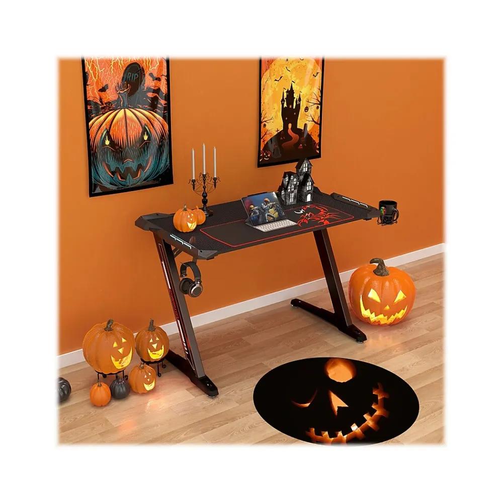 - Sleek computer gaming desk with plenty of features to help you have a better gaming experience