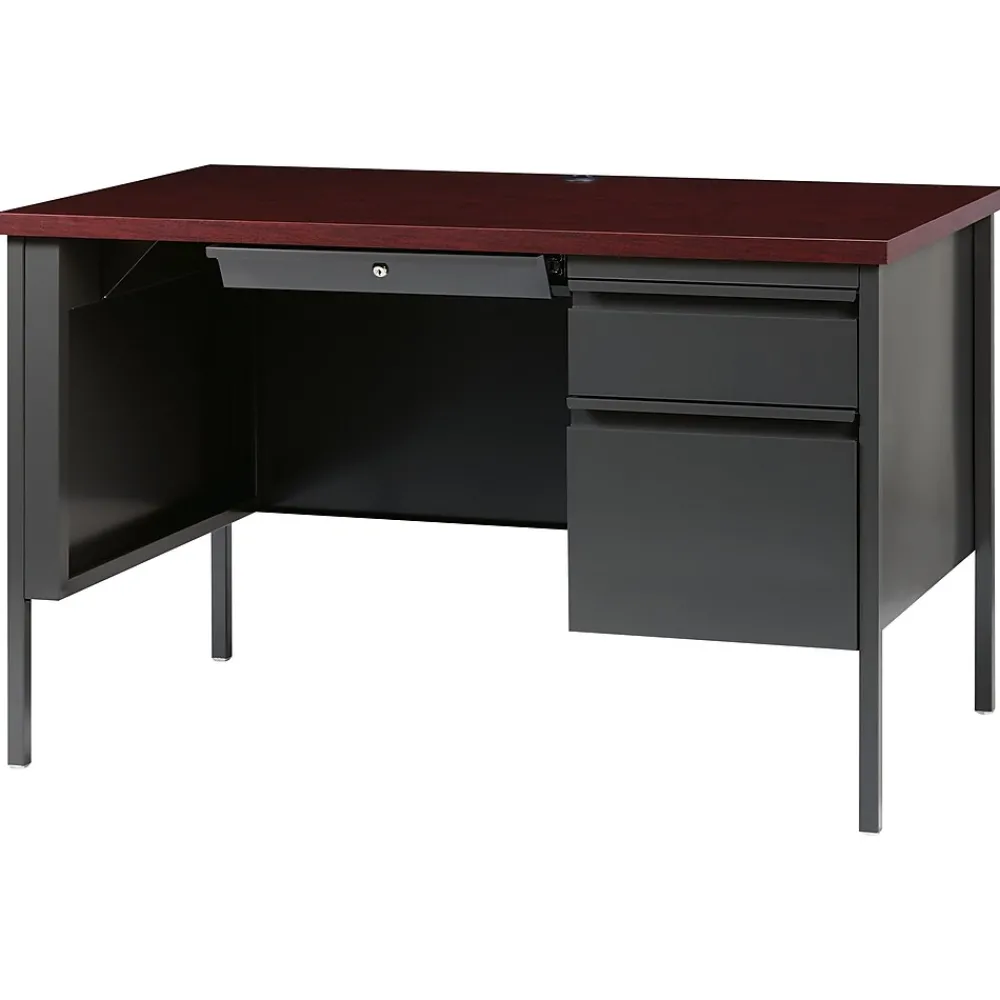 Commercial grade metal desks are perfect for business, educational or personal offices. These desks are constructed with high quality durable materials that are suitable for heavy use. Standard features include: full extension ball-bearing slides for smooth drawer action, central locking center drawer, and a durable laminate work surface. Desk ships fully assembled except for the legs. Hardware to attach legs is included. All desks are designed to meet or exceed ANSI-BIFMA industry standards for performance and workmanship and are backed by a Limited Lifetime Warranty.