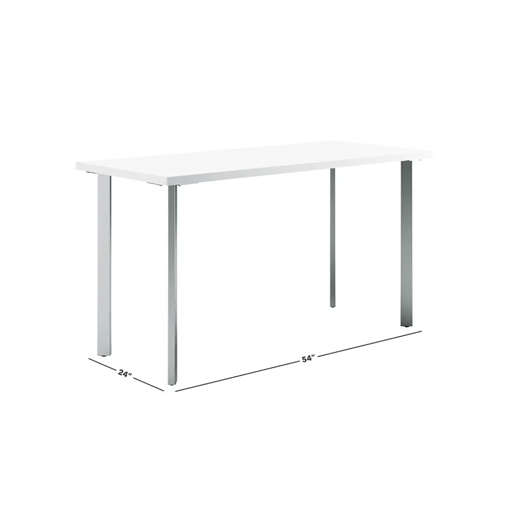 HON Coze Table Desk | 54″W x 24″D | Designer White Laminate | Silver Leg Finish