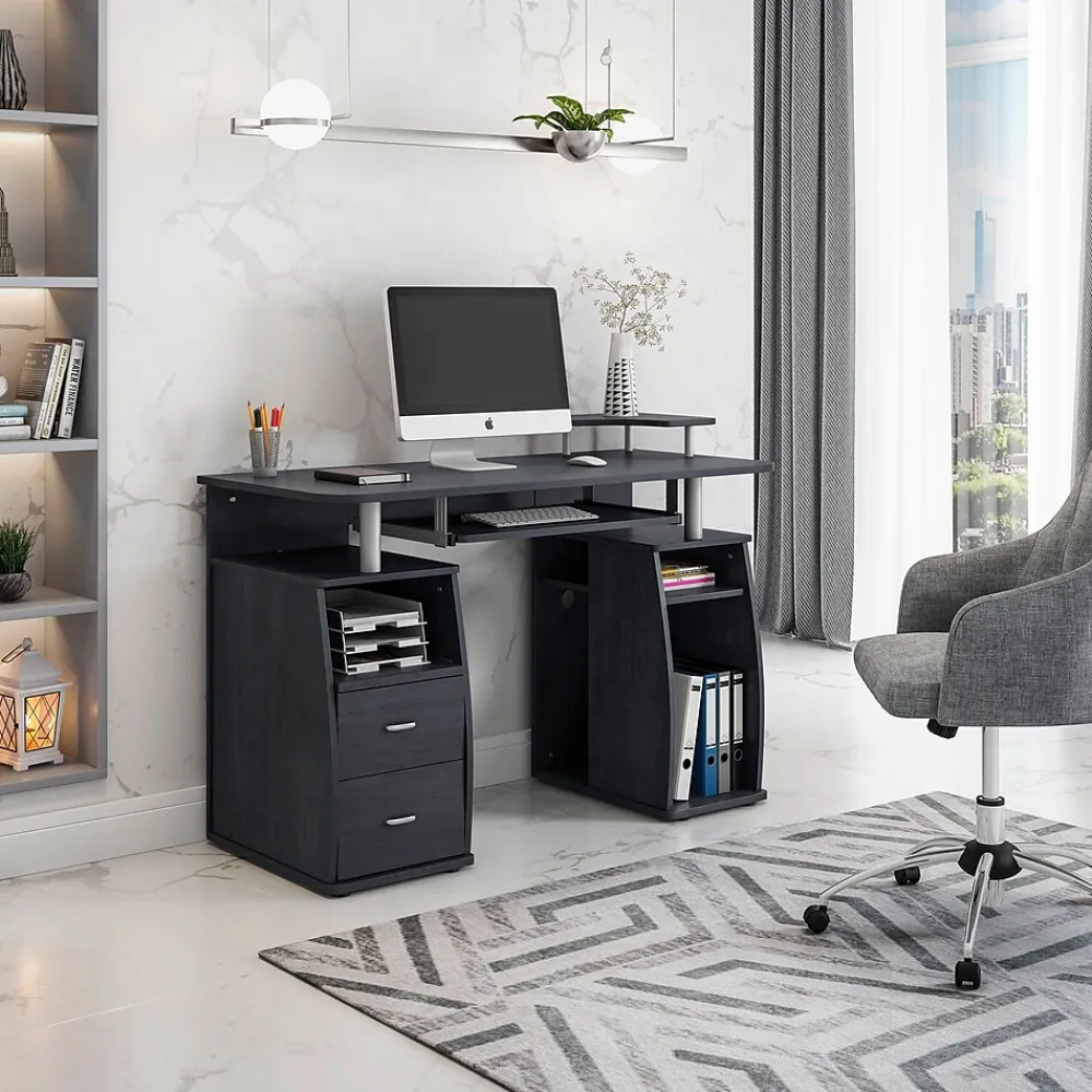 - This computer desk offers an ample work surface and plenty of storage space