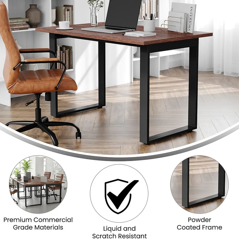 Foster big thinking during brainstorming sessions or encourage open communication and interaction between stakeholders during important meetings with this 48×30 commercial grade conference table. Available in timeless finishes that will blend well in any environment, this boardroom table will make a statement while providing ample space for multiple guests. The liquid and scratch-resistant 1 inch thick table top with a durable laminate finish on both sides and PVC edging increases durability for long-lasting use. The heavy-duty, powder coated, U-frame steel base comes with included hardware and easily attaches to the underside of the table into the predrilled holes. This conference room table holds up to 300 lbs. static weight, and features adjustable floor glides ensuring a level surface. Assembly takes less than 10 minutes and cleanup is easily achieved with a damp cloth.