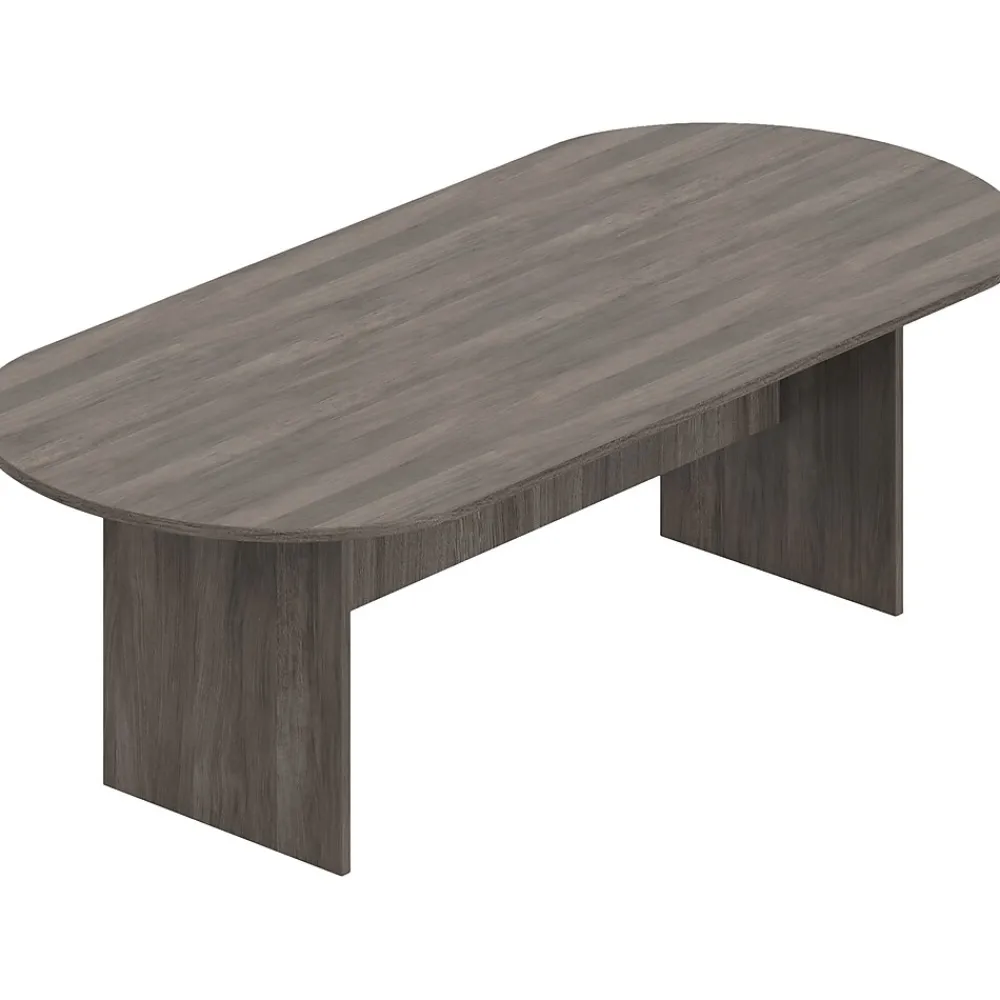 This contemporary Offices to go 95″ racetrack desk with panel base comes in artisan gray color. Its form and laminated surface are perfect for writing or using your laptop and great for home or offices. All Superior laminate desking products are in compliance with stringent emission guidelines set out by the GREENGUARD Environmental Institute under the standards for low-emitting products and materials.