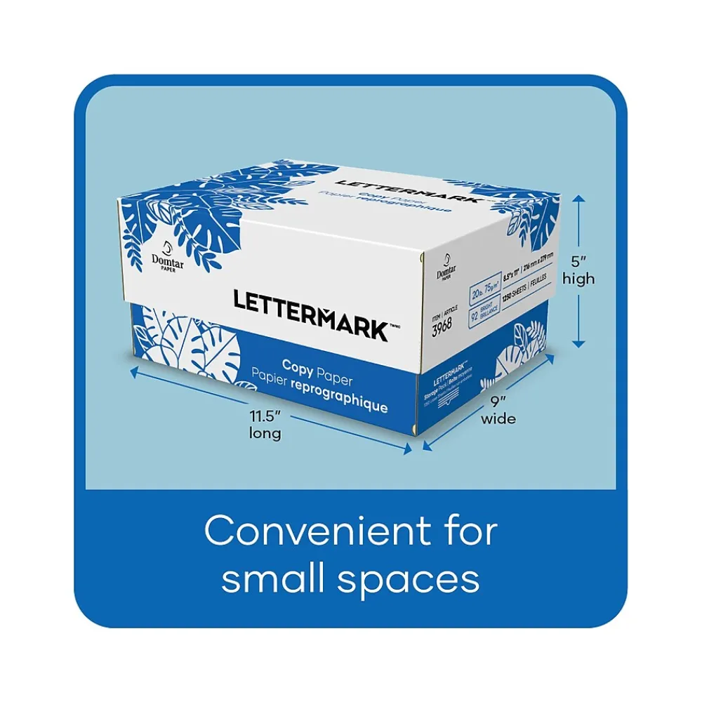 The Lettermark storage pack was created with the small business and home office printing needs in mind. Filled with Lettermark copy paper, this 1520 loose sheet pack has the benefit of easy access to the paper, reduced waste, ease of portability, a small footprint for limited storage spaces, and a stylish design. Lettermark is North American made and delivers exceptional everyday performance, featuring ColorLok technology and a 99.99% jam-free promise.