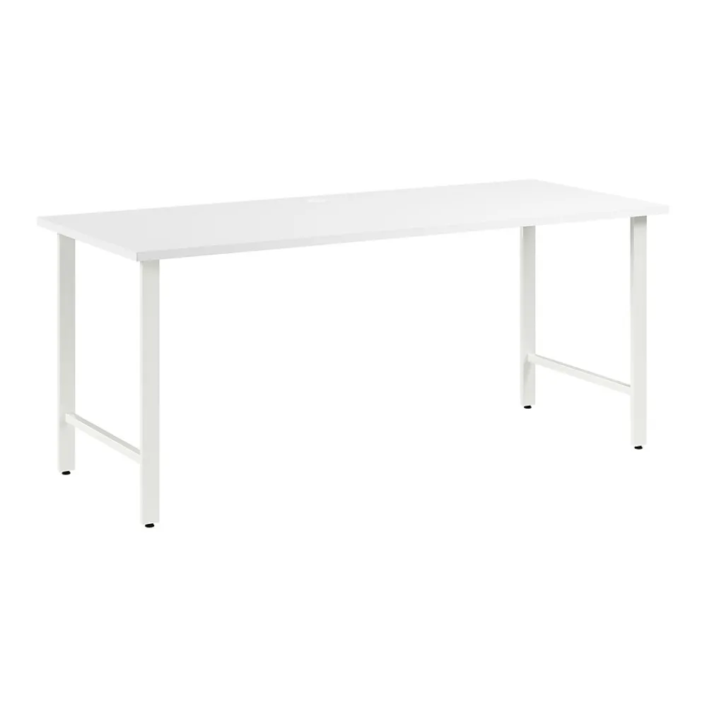 - Desktop accommodates materials and equipment with a built-in wire management grommet and a weight capacity of 200 pounds
