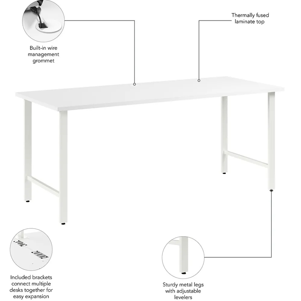 The Bush Business Furniture Hustle 72W x 30D Computer Desk with Metal Legs provides the form and function needed to support your entrepreneurial spirit without breaking the bank. An ideal choice for small to medium-size businesses and home offices alike, each modern desk includes a bracket that allows for workstations to connect as your needs evolve and expand. Spread out with materials and equipment on a durable work surface with built-in wire management and a weight capacity of 200 pounds. The large office desk’s thermally fused laminate finish fends off scratches, stains, and other cosmetic damage that occurs from daily use in a busy professional environment. This computer table desk has been meticulously designed and tested to meet or exceed ANSI/BIFMA standards for safety, durability, and performance and is backed by a 10 Year Warranty. American made with U.S. and imported parts.