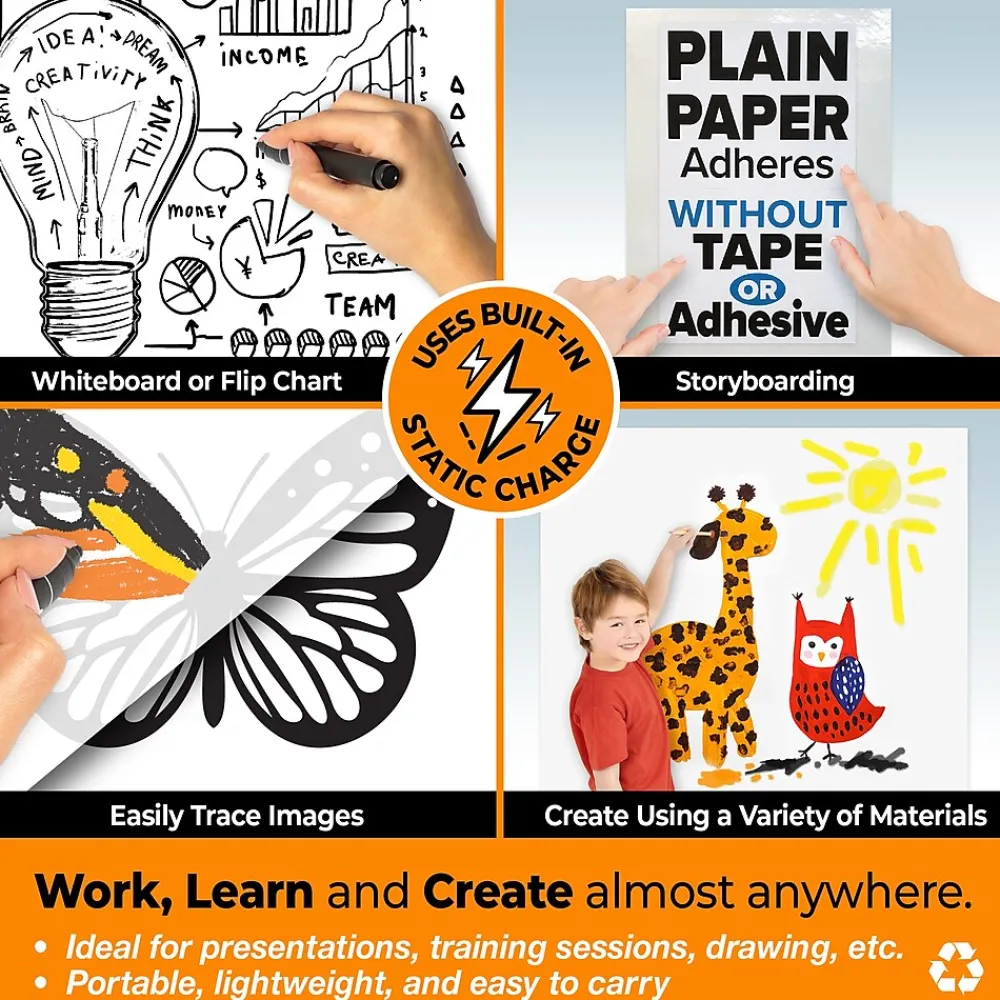 - STORYBOARDING: Cling lightweight paper onto the surface for storyboarding, or under it for tracing images, no tape or adhesive required.