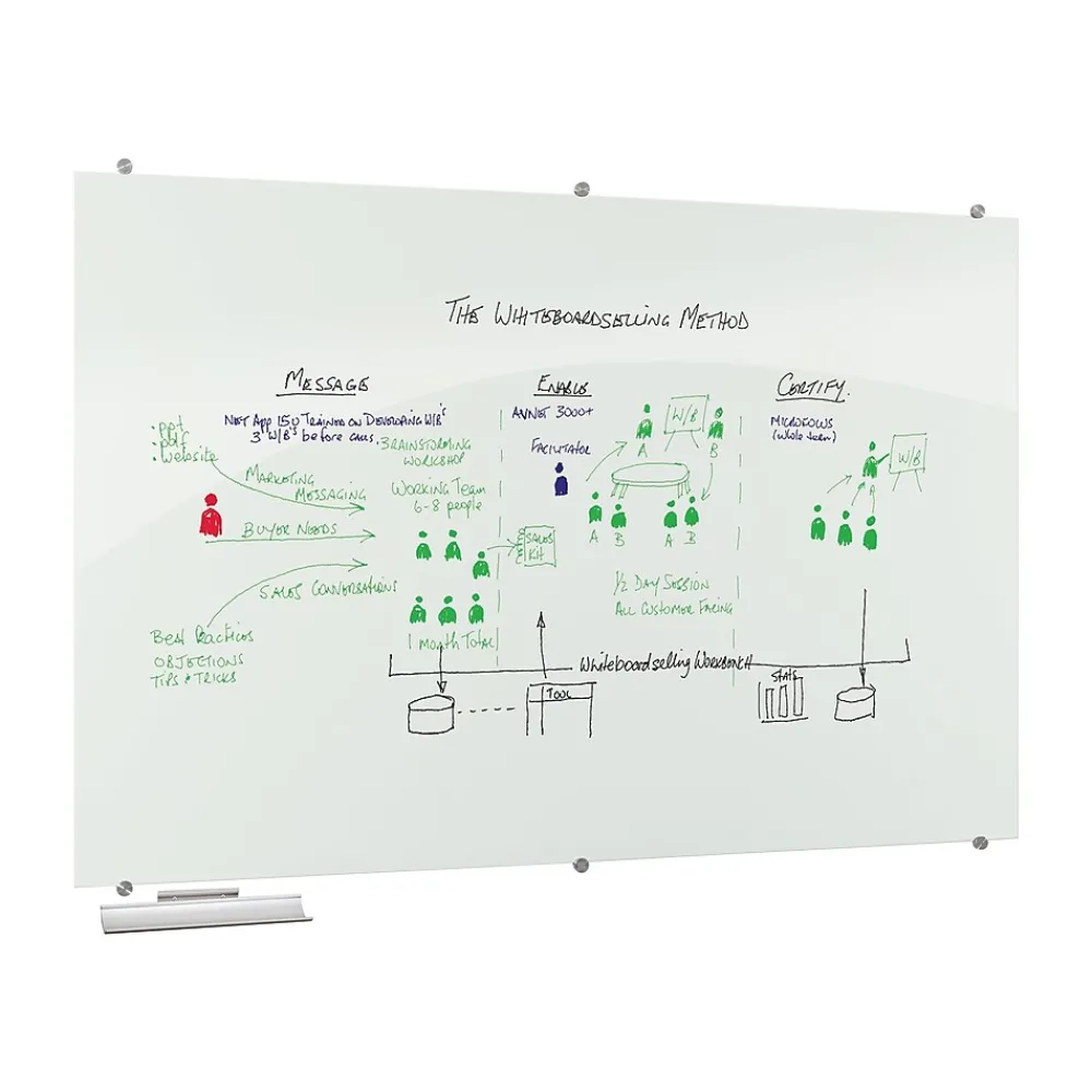 - Durable tempered glass accepts dry or wet-erase markers, grease pens, etc