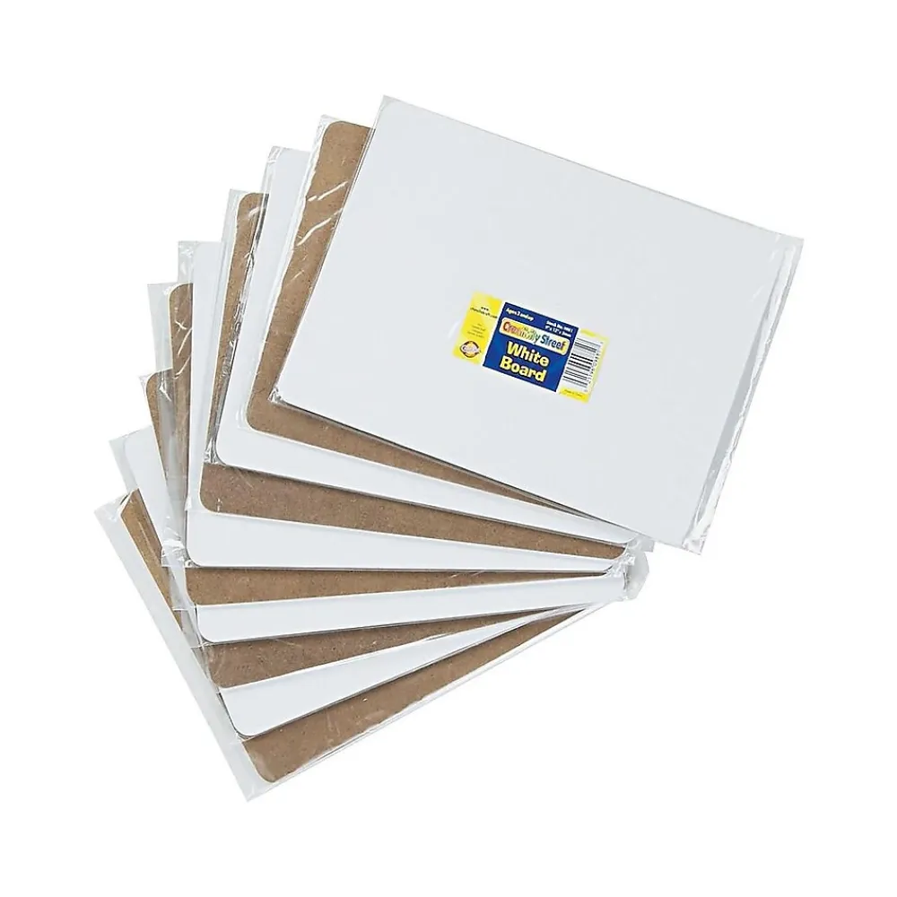 Let students express their thoughts and messages on this dry-erase board. The white melamine material offers a smooth writing surface that easily wipes clean, and the rounded corners ensure safe handling. This Chenille Kraft student board is ideally sized at 12 x 9-inch for individual use and easy placement on desktops, and the 10-piece set provides enough boards for activity group members.