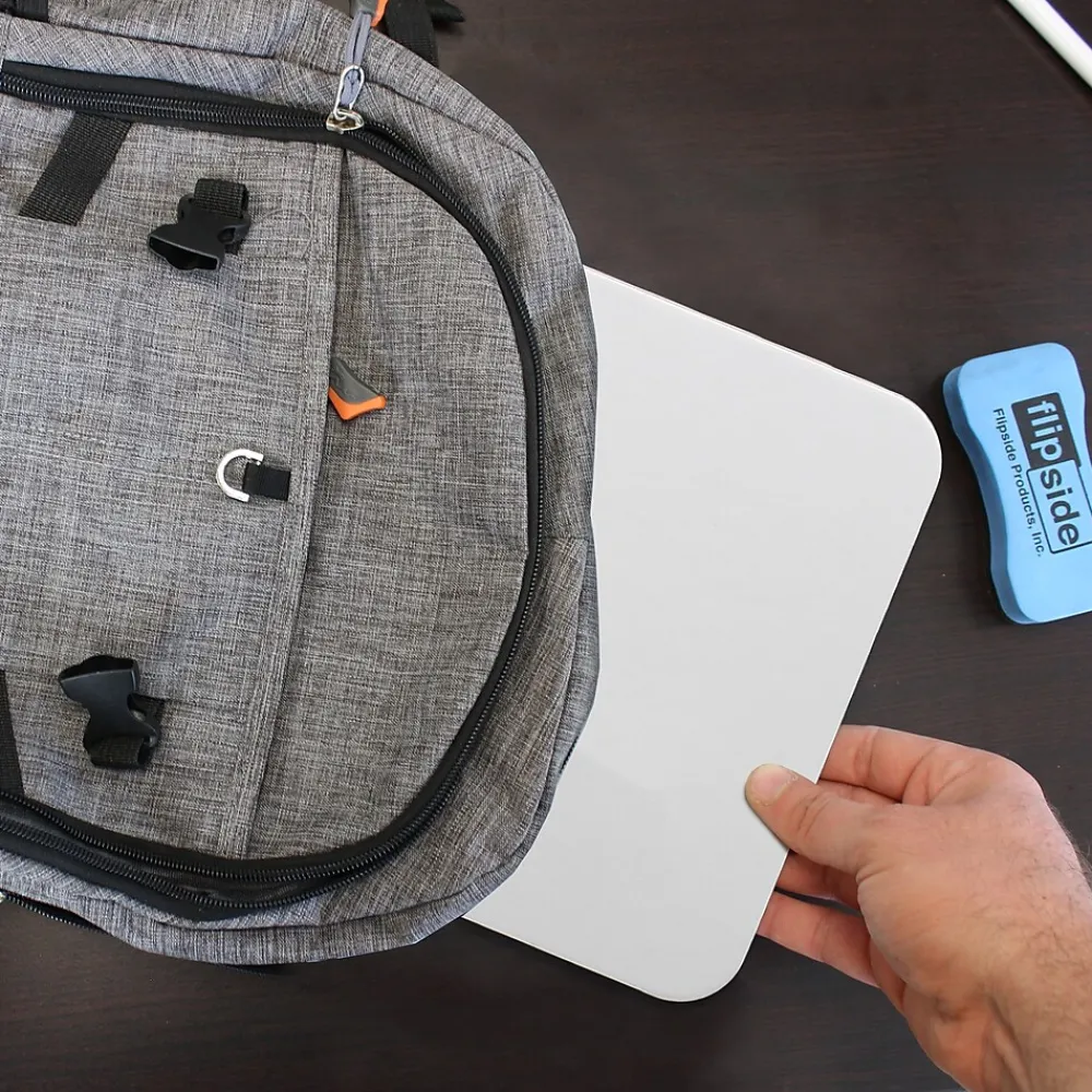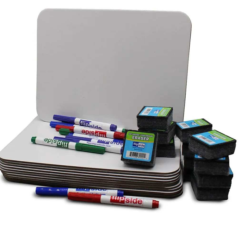 Easy to hold, the Flipside magnetic dry-erase whiteboard is great for quick-response lessons and games. Each set contains 12 magnetic boards, 12 erasers, and 12 pens in blue, green, red, and purple (three of each color).