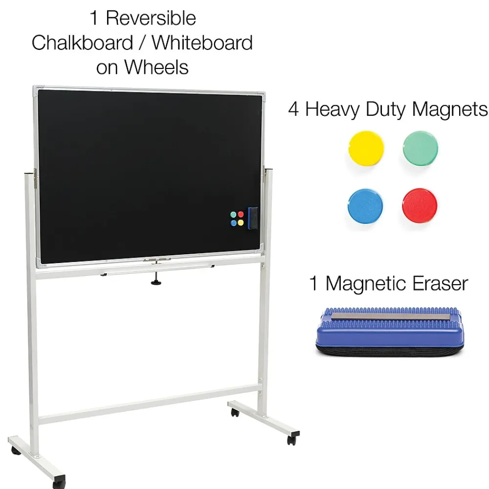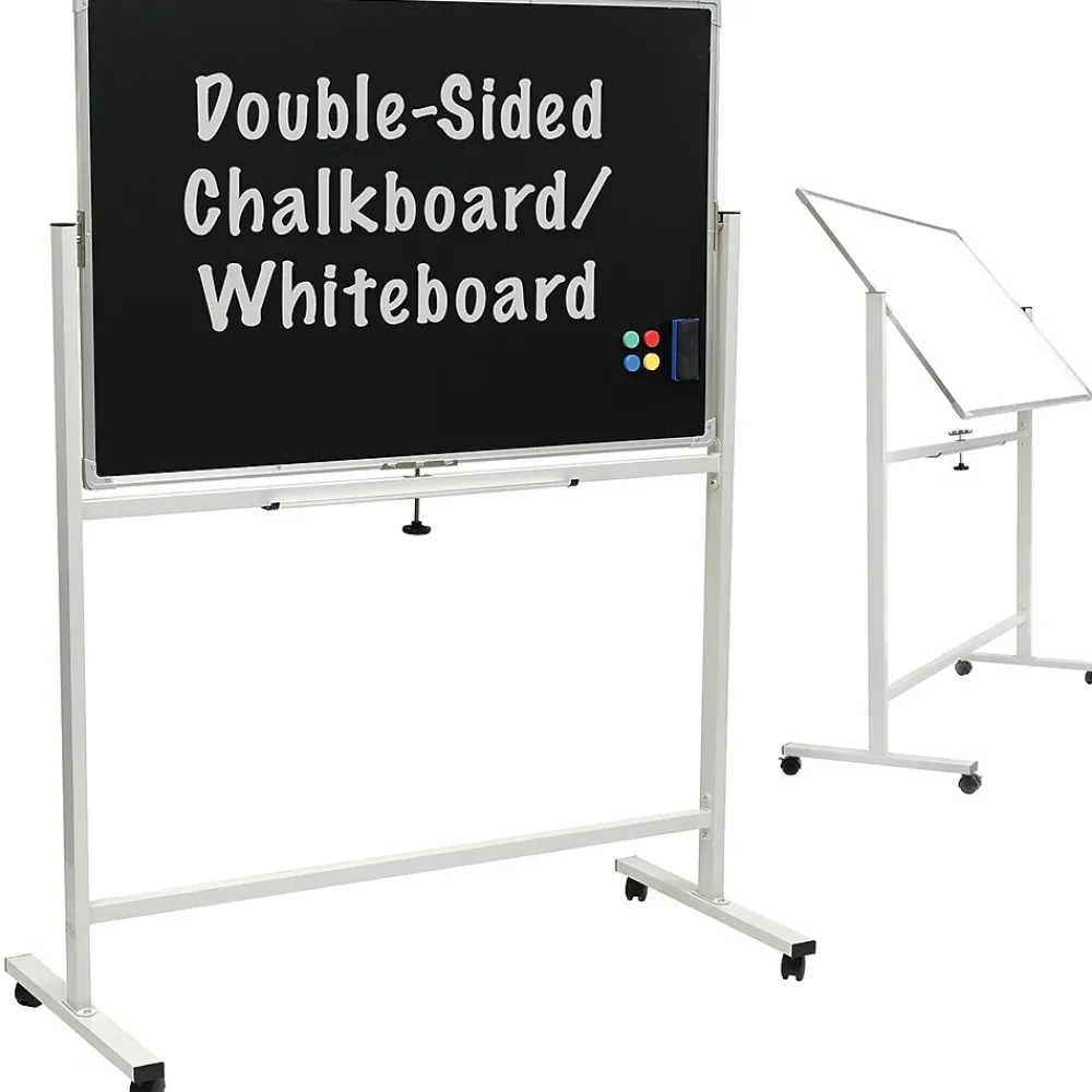 - DUAL-SIDED MAGNETIC SURFACE – Switch effortlessly between the magnetic chalkboard and whiteboard, offering a flexible and versatile writing surface for various uses like teaching, planning, or presentations.