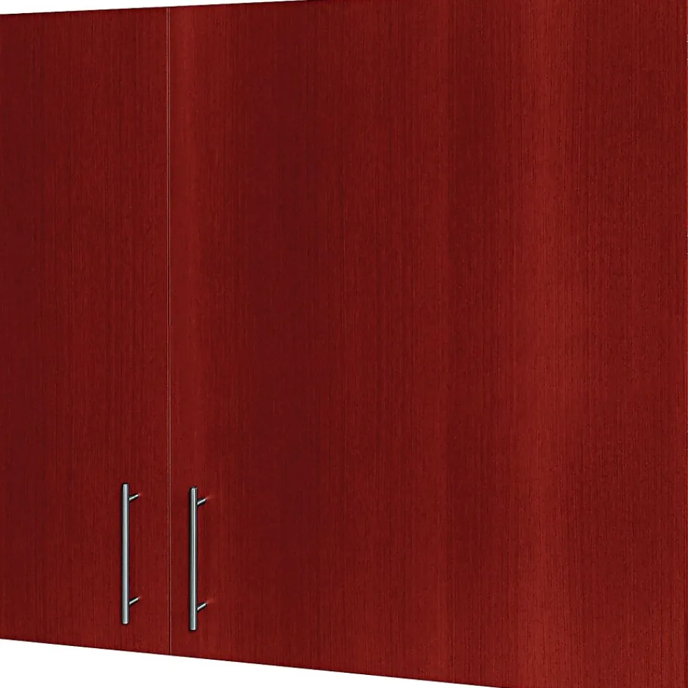 - Double doors have heavy-duty hinges, and brushed nickel door pulls
