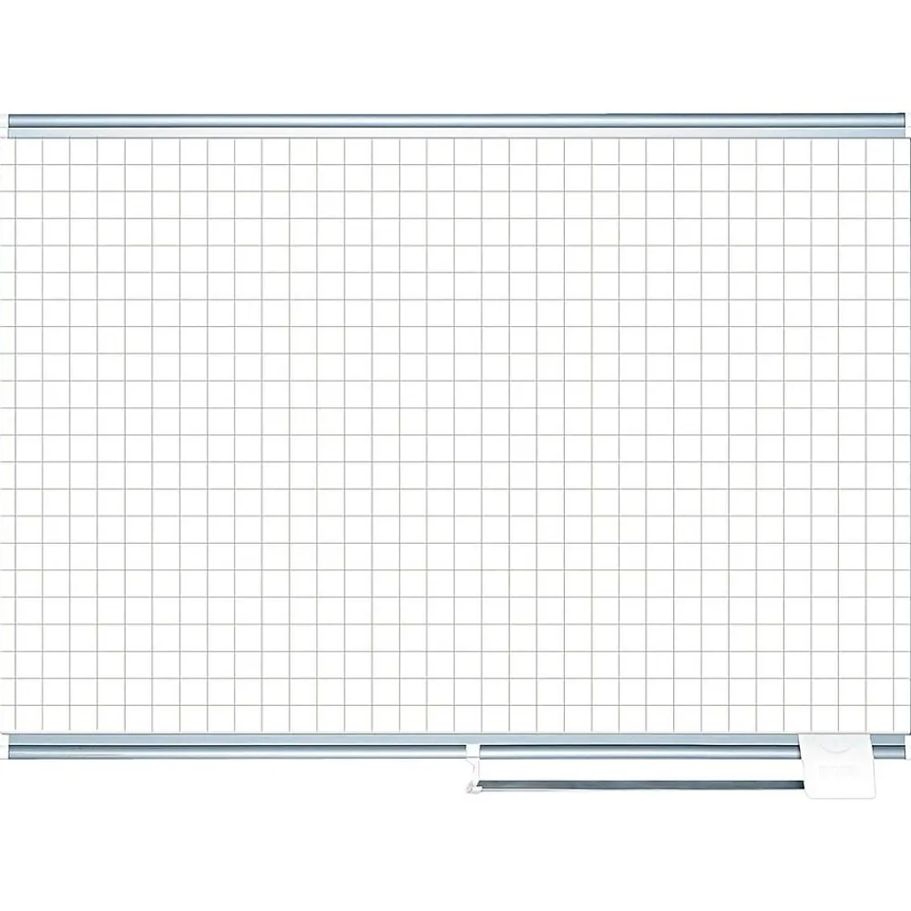Draw graphs, charts, and other drawings with this 1-inch-grid white and silver planning board. The four-corner mounting system and included hardware make it easy to set up, while the silver and white coloring offers a sleek, contemporary look. This Mastervision Gold Magnetic Ultra planning board has pale gray grid lines to make whatever you write or draw stand out.