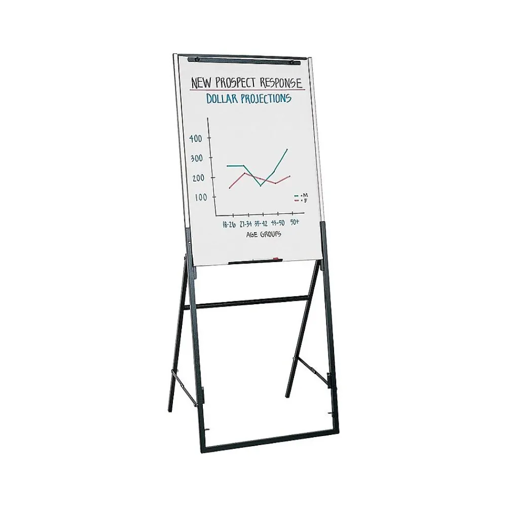 Ensure writing is highly visible with this whiteboard/flip chart easel. The adjustable design is ideal for use on the floor or on a tabletop, while the whiteboard surface makes it easy to edit writing as needed with the included dry-erase marker. This Quartet Futura whiteboard/flip chart easel is lightweight and collapsible, so it can be conveniently transported or stored away.