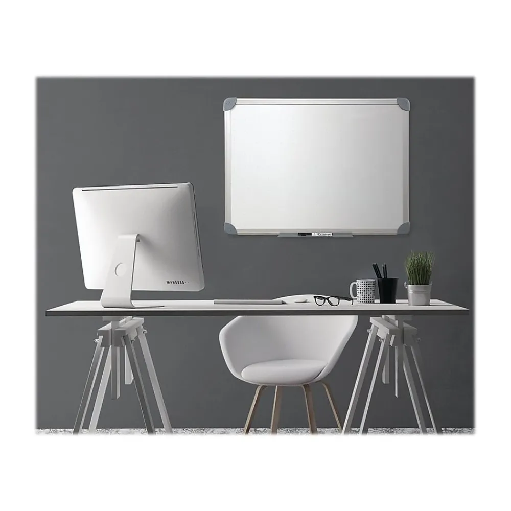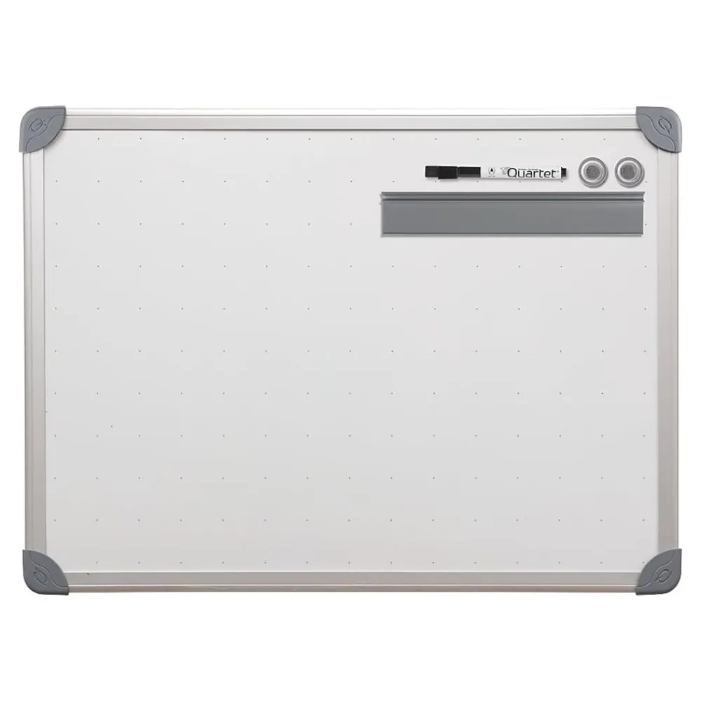 Produce clear writing with this dry-erase board value pack. The magnetic design allows for markers and erasers to be easily attached for fast access, while the included hardware makes mounting quick and simple. A Euro-frame design with cornered caps provides a stylish appearance. This Quartet Euro-frame magnetic dry-erase board value pack comes with four markers, magnets, and an accessory tray for added convenience.
