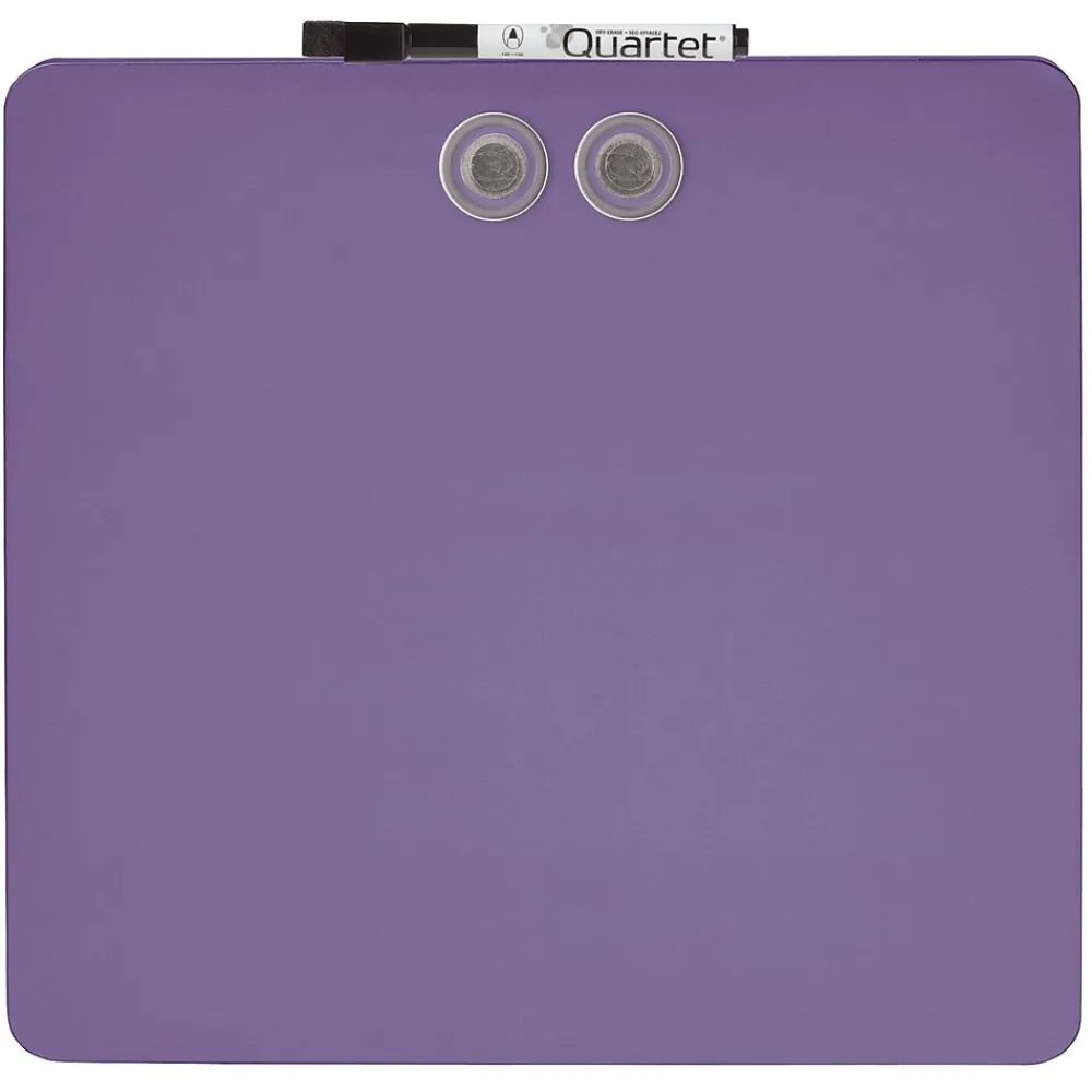 Brighten up your locker, a workspace, or another area with this assorted-color dry-erase board. The magnetic construction allows you to secure notes, memos, and other papers, while the included marker and two magnets make it easy to start using this board right away. This Quartet tin modular frameless square dry-erase board comes with mounting tape for added convenience. Assorted colors include white, blue, pruprle, or green. Color is chosen at random, no requests.