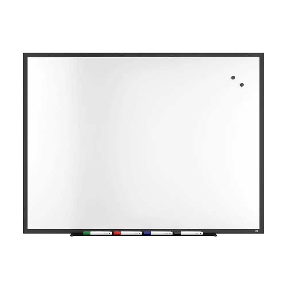 This TRU RED™ whiteboard features a durable, non-porous magnetic porcelain surface that prevents marker ink from penetrating the board and makes cleaning just as easy as writing. The magnetic surface of the board is perfect for brainstorming additions like papers, photos, or designs. The large surface area of the board is easy to care for, perfectly sized for use in the office or the home, with an added versatility that allows vertical or horizontal placement. Clean when necessary but know that those long-term ideas can stay up without worrying about leaving a permanent stain.