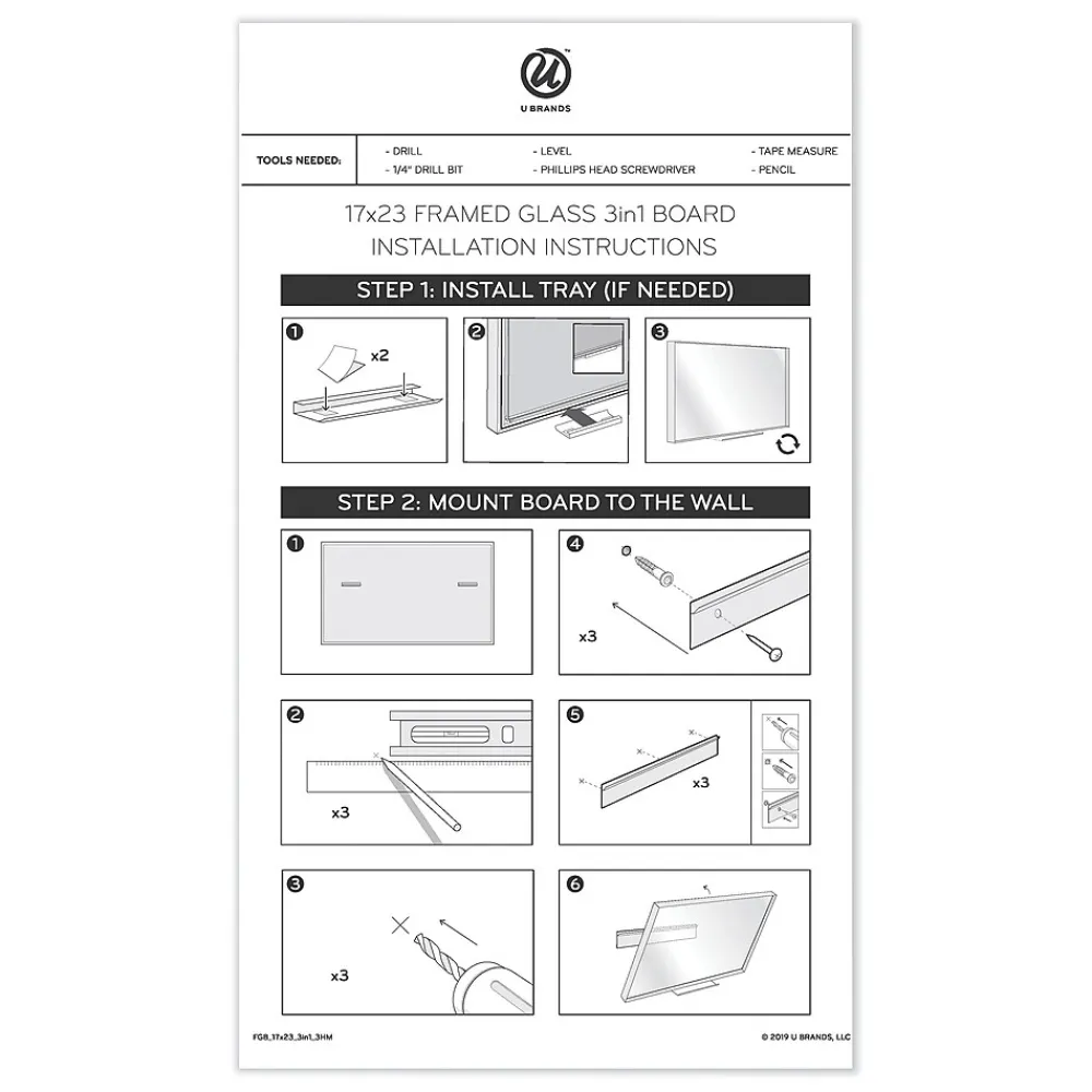 This U Brands dry-erase whiteboard features tempered glass surface that will never stain or ghost — highest quality dry-erase surface available. Frosted white calendar surface, gray blank surface, and built-in felt strip.
