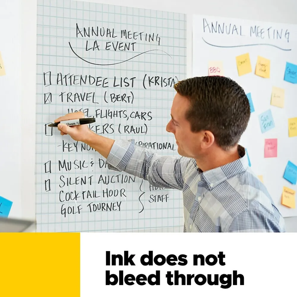- Ink-Bleed Through Resistant Paper – Large white recycled premium self-stick flip chart paper that resists marker bleed-through to keep great ideas on the page, not on what’s under the page. Made with 30% recycled material.