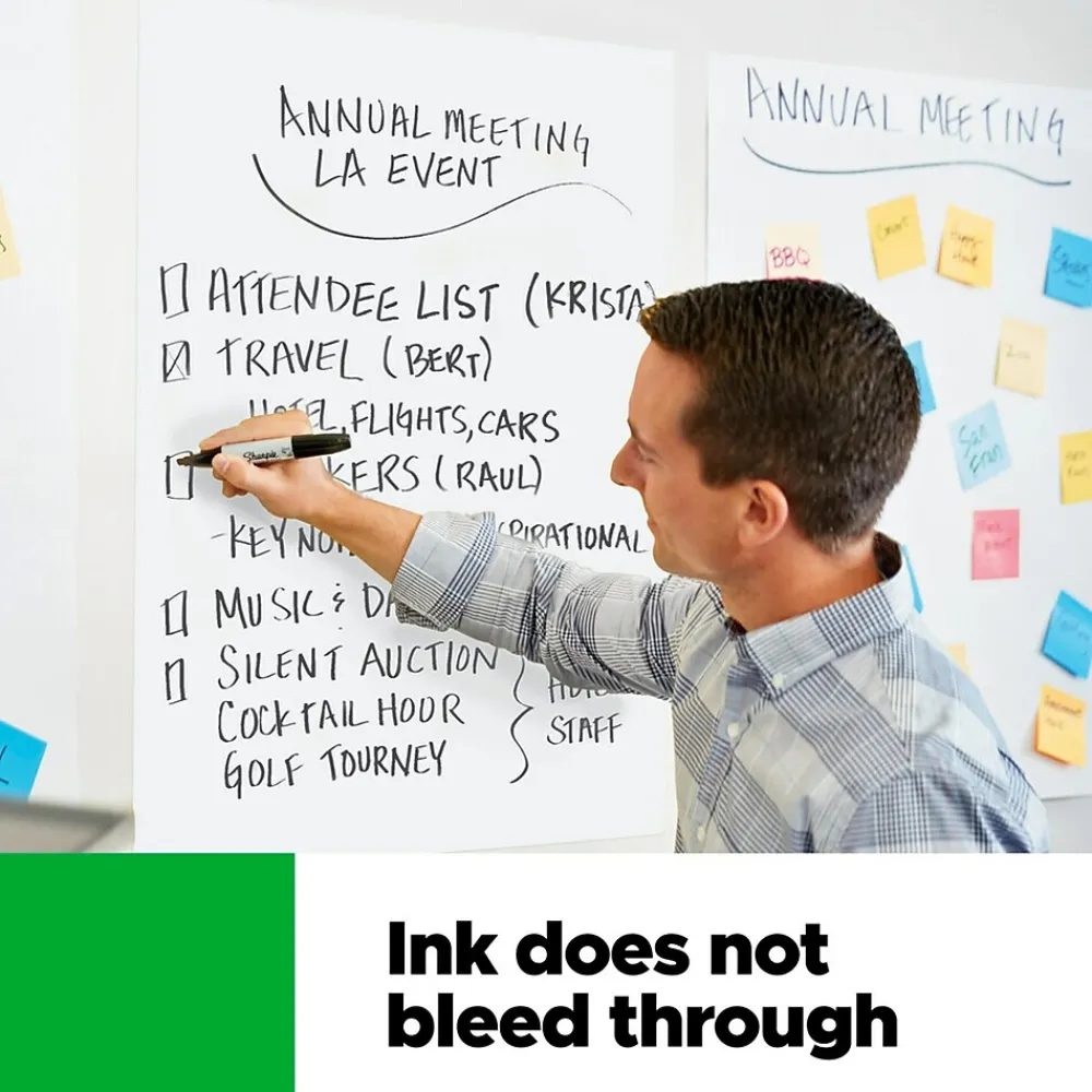 - INK BLEED-THROUGH RESISTANT PAPER – Large white recycled premium self-stick flip chart paper that resists marker bleed-through to keep great ideas on the page, not on what’s under the page. Made with 30% recycled material