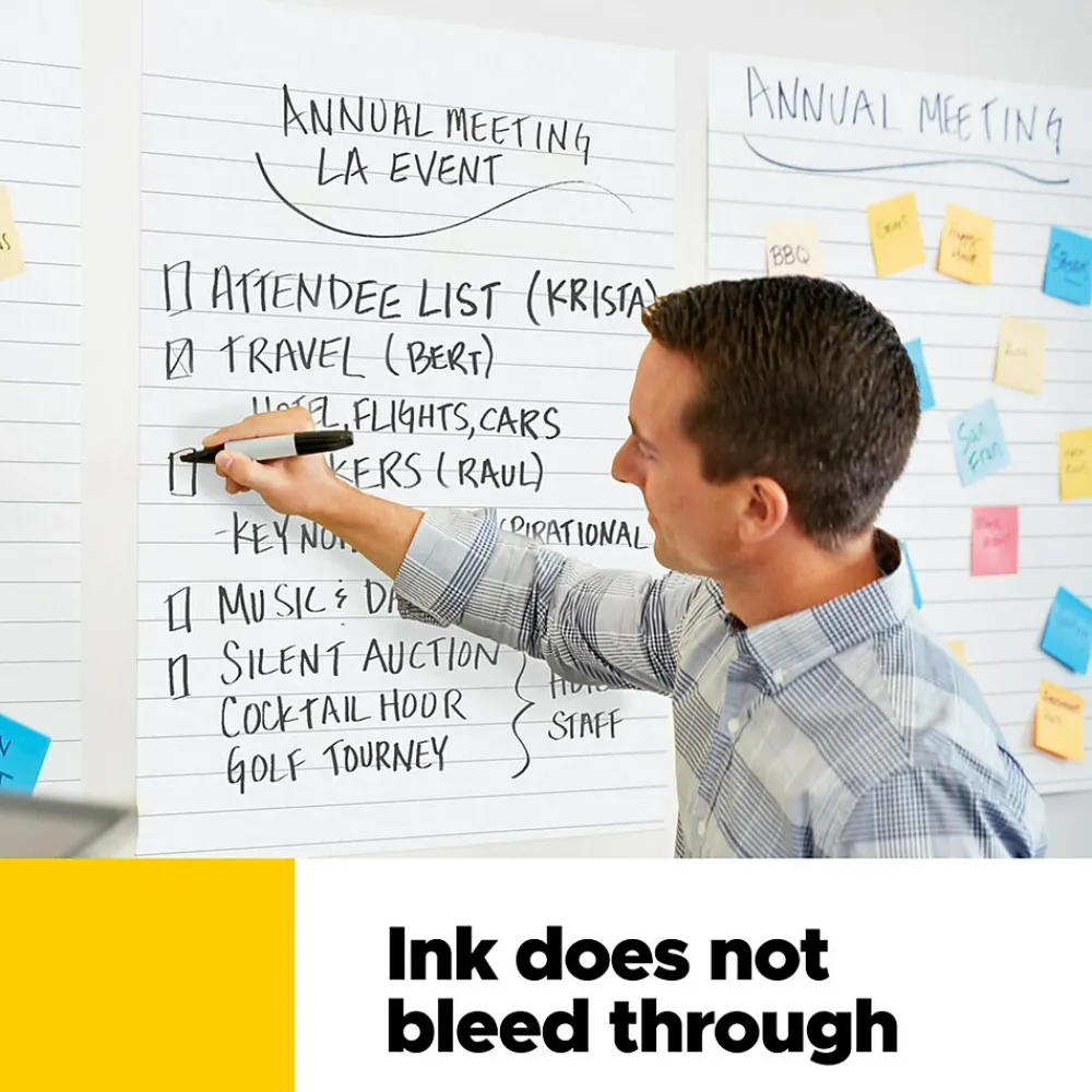 - INK BLEED-THROUGH RESISTANT PAPER – Large white lined premium self-stick flip chart paper that resists marker bleed-through to keep great ideas on the page, not on what’s under the page